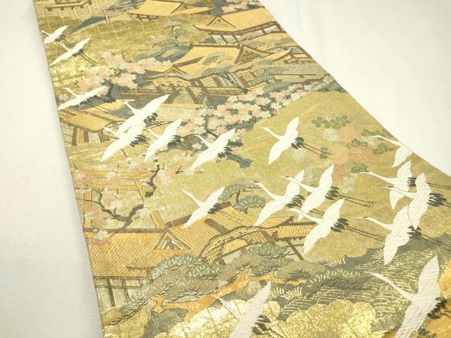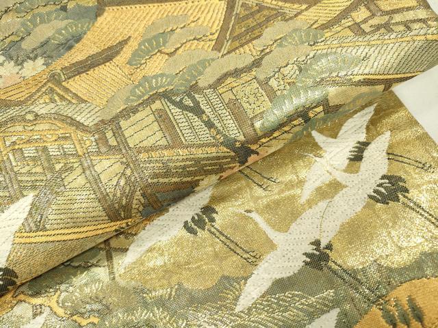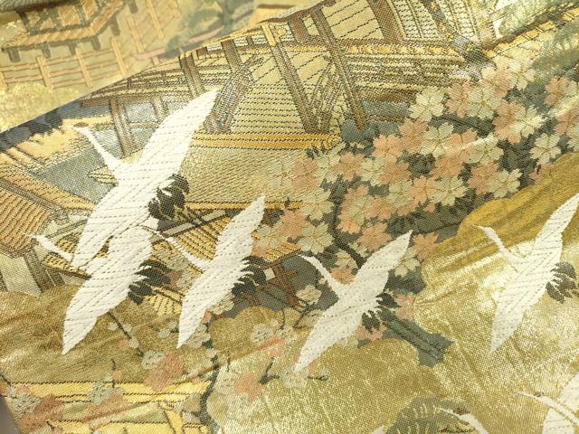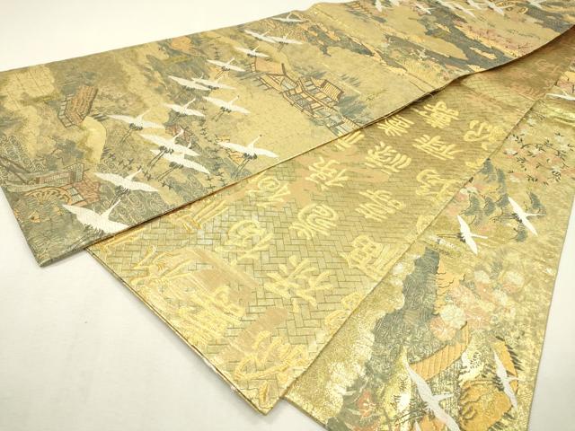 Heiwaya Main Store ▼ Premium Nishijin Asagi Double-Sided Full-Length Patterned Obi Sash: Cranes in and around Kyoto, Thousand Characters Pattern, Genuine Gold Leaf, Pure Silk, Exquisite Item DABC6332fe
