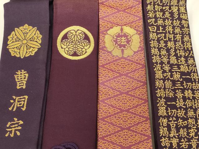 Heiwaya Main Store ▼ Ring-shaped Buddhist stole 4-piece set: Heart Sutra, Three-leaf hollyhock, Gentian wheel, Buddhist robe, temple, Buddhist implements, Buddhism, monk, Shinto priest, attire, AABH2780ja