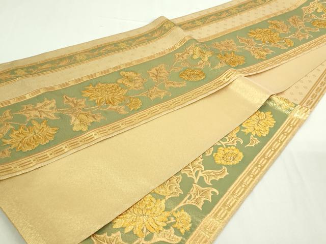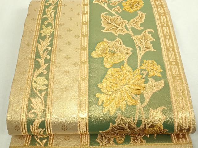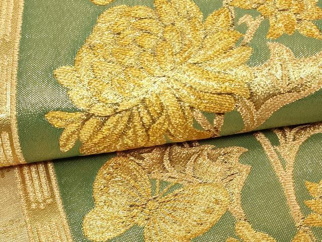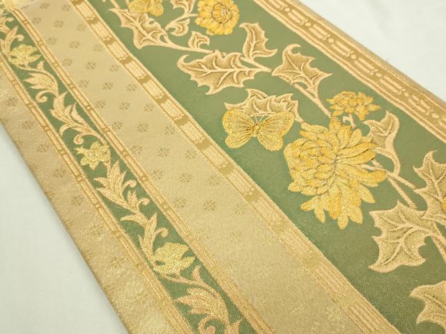 Heiwaya Main Store ▼ Six-Piece Pattern Obi with Chrysanthemum and Butterfly Design, Gold Sand Brocade, Pure Silk, Excellent Item, DAAZ9850sf