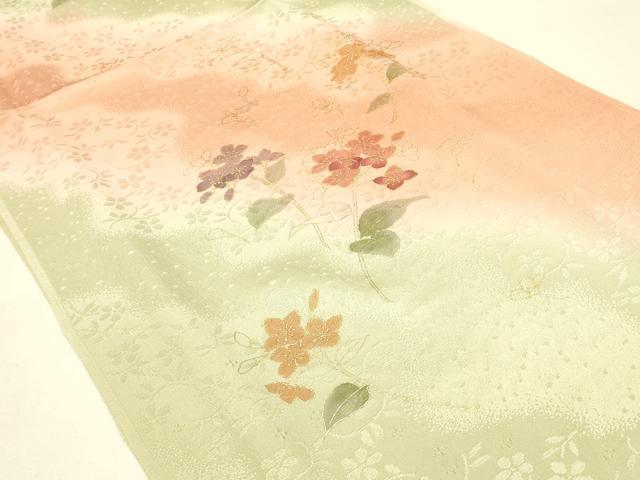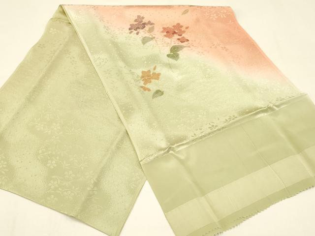 Heiwaya Main Store: Japanese Accessories: Obijime and Obiage Set, Yamato-Koryo Style, Floral and Grass Pattern, Gradient Dye, Gold Thread, Gold Accents, Excellent Quality, Unused, AABC2762ay