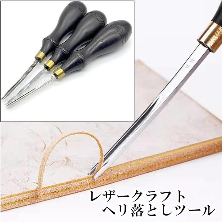 先端が大きく窪んだ特殊な形状をしており革のエッジを覆うように捉えるので力がブレにくくスムーズに削ることが可能です。