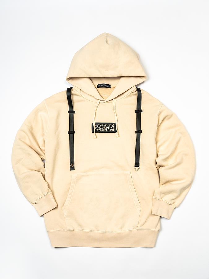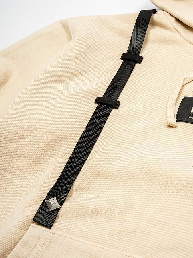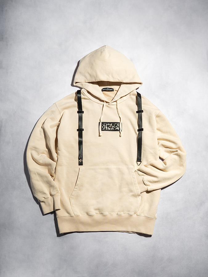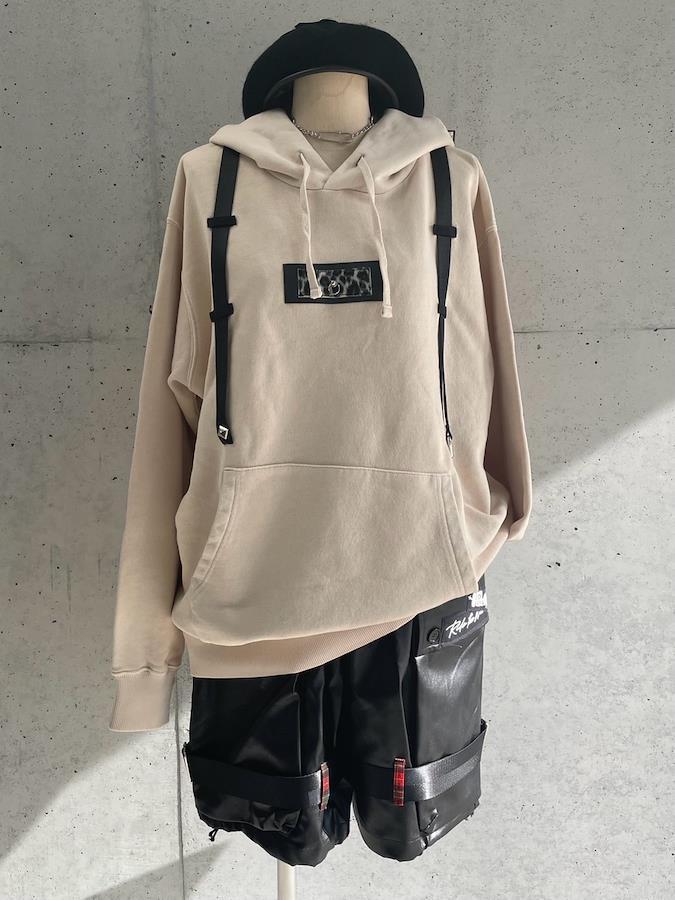 パッチ&ストラップがアクセントのプルパーカー。