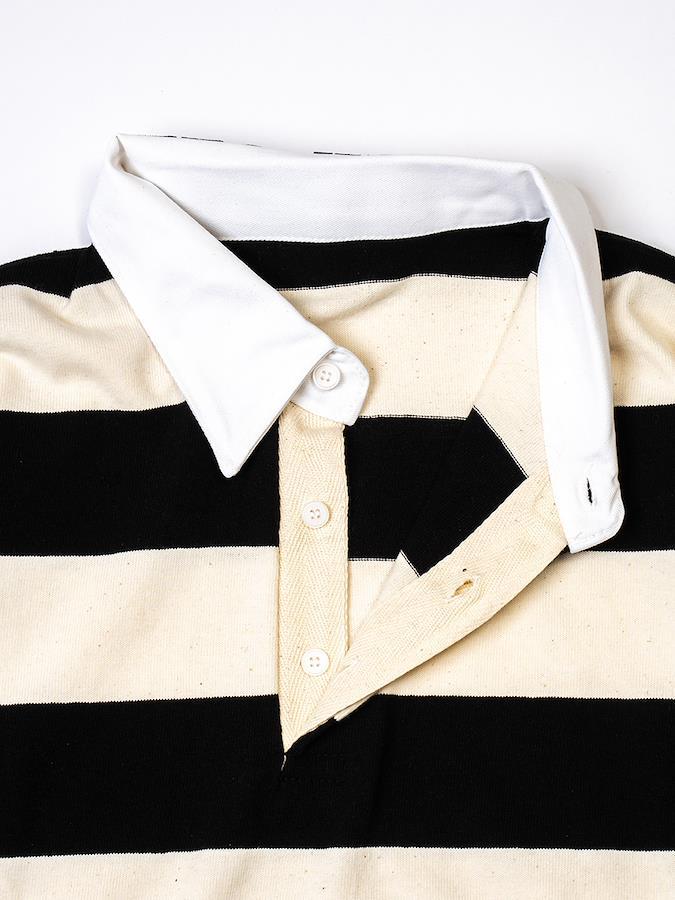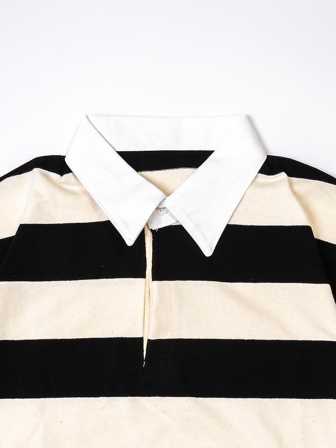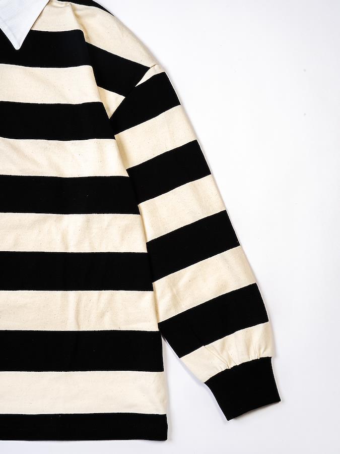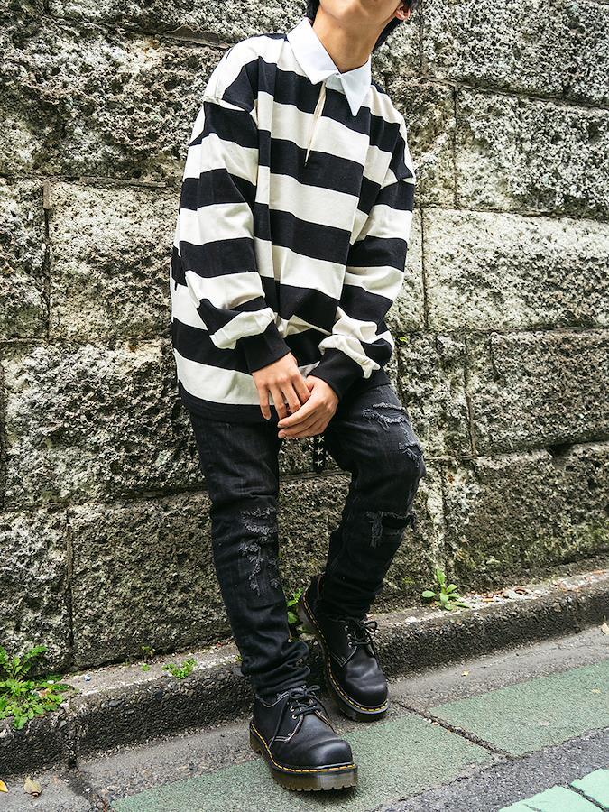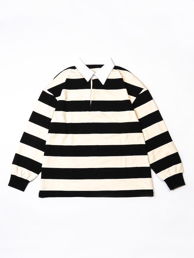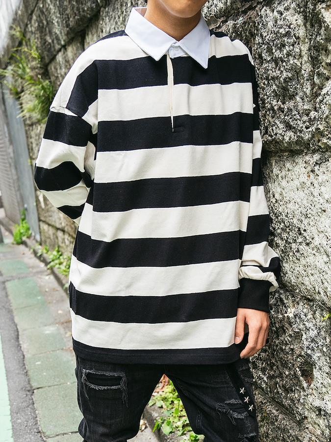 黒×白の定番カラーでコーデしやすいラガーシャツ。パンツと合わせてメンズライクに着こなしたり、スカートと合わせてmixコーデを楽しんだりコーデの幅が広がるアイテム♪男女問わず着用可能なビッグシルエットです。