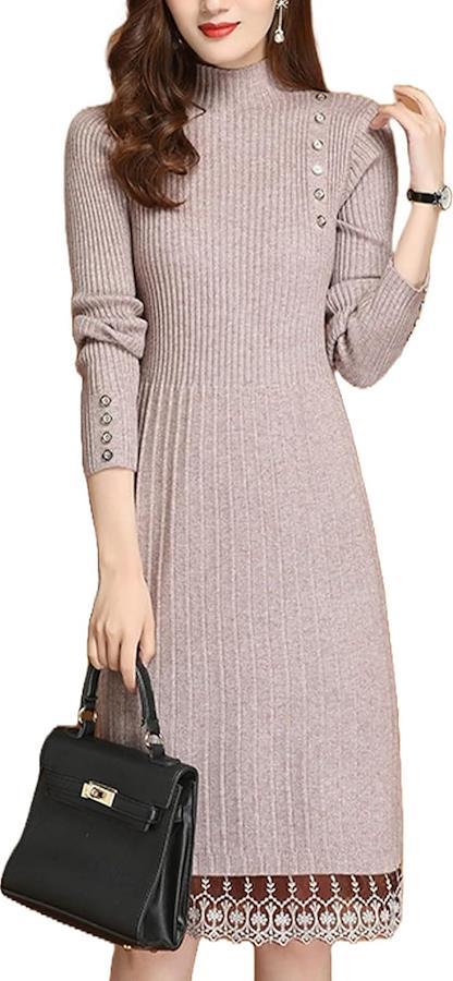 「上品さとフェミニンな魅力をアピール」 体のラインをすらっと綺麗に魅せるリブニットワンピ。