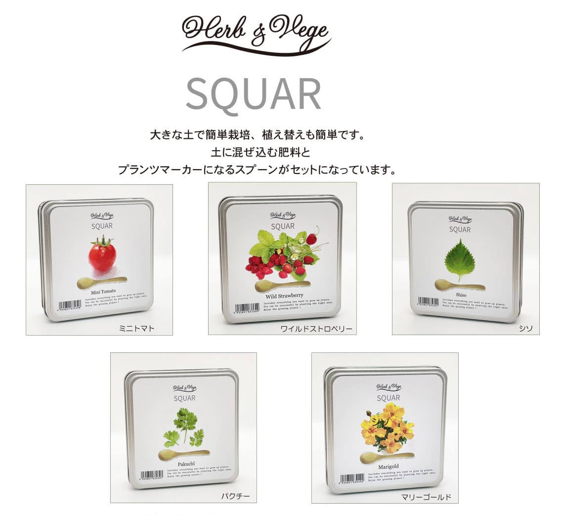〇商品説明大きな土で簡単栽培、植替えも簡単です!場所を取らず簡単に育てられる栽培キットです。キッチンなどで育ててお料理に使ったりできます!土は圧縮乾燥されてますので水分で膨らませて種を蒔くだけです。缶の中で最後まで栽培を楽しめます。土に混ぜ込む肥料と木のスプーンがセットになっています。スプーンは土いじりが終わったらプランツマーカーとして使用できます※発芽適温、生育適温、発芽期間などは商品のラベルに記載されています。※基本的に室内であれば1年中栽培可能です
