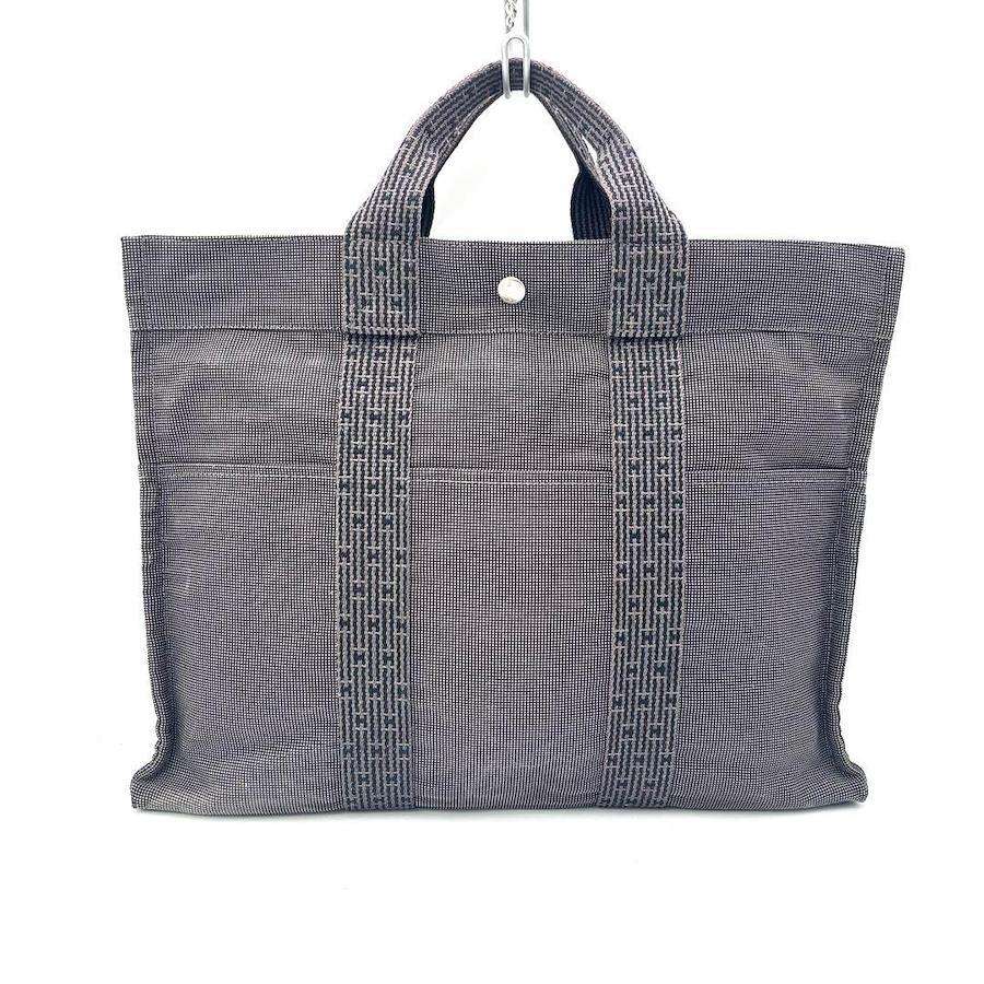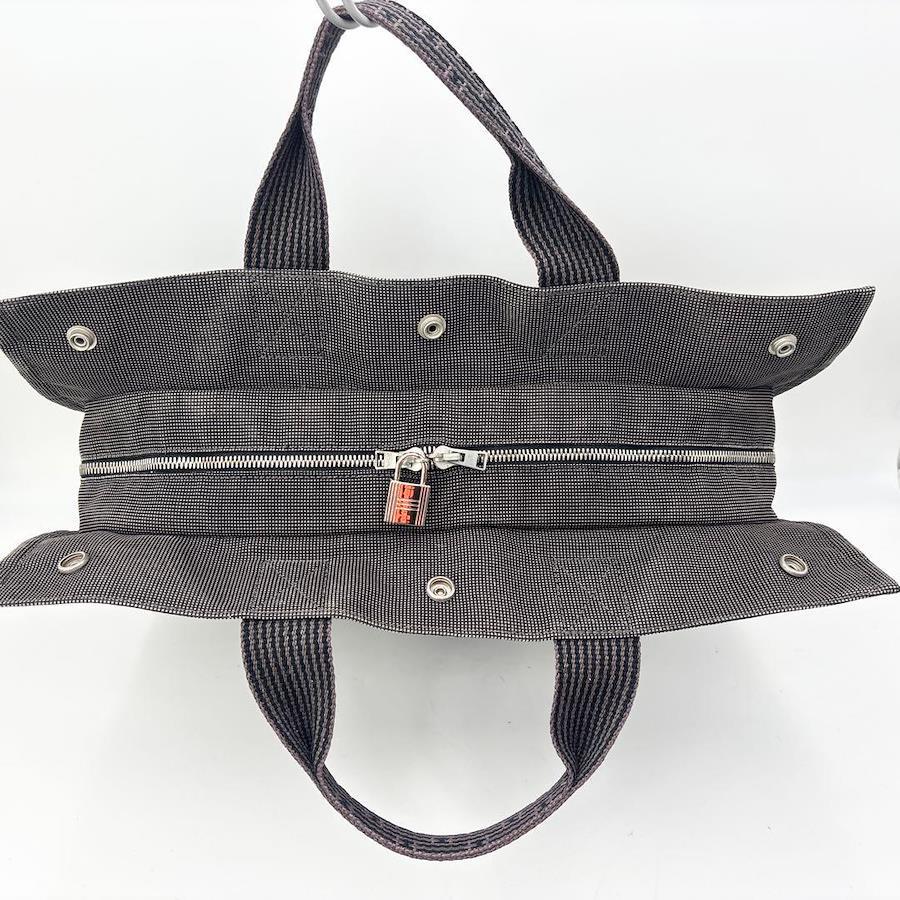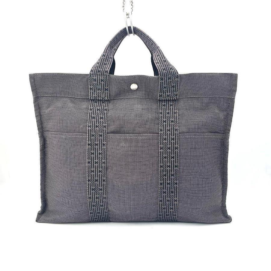HERMES エルメス エールライン MM トートバッグ グレー系 鞄 カバン カデナ(鍵付き) ナイロン カジュアル ファスナー