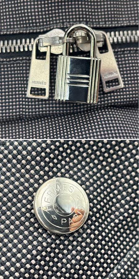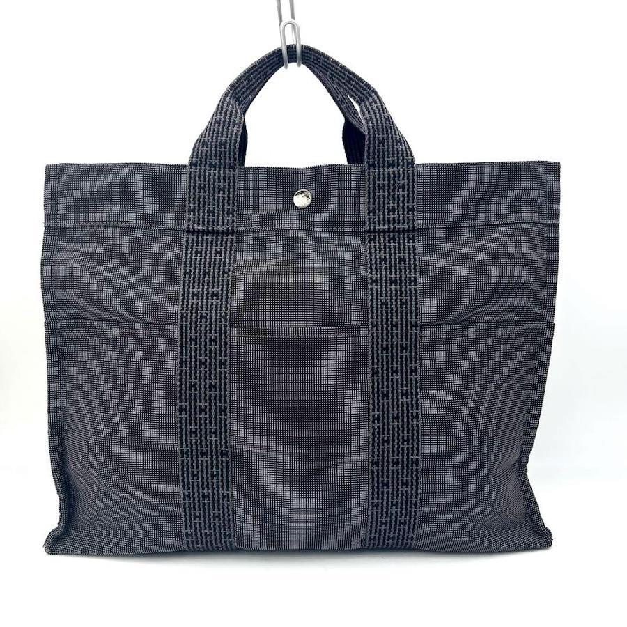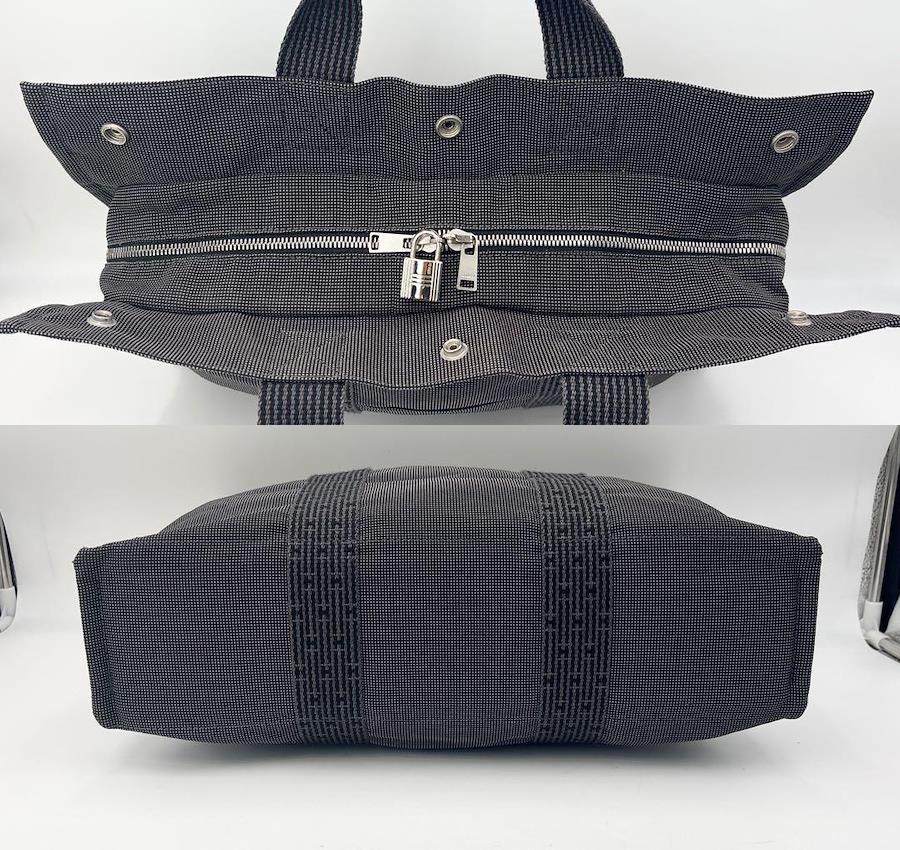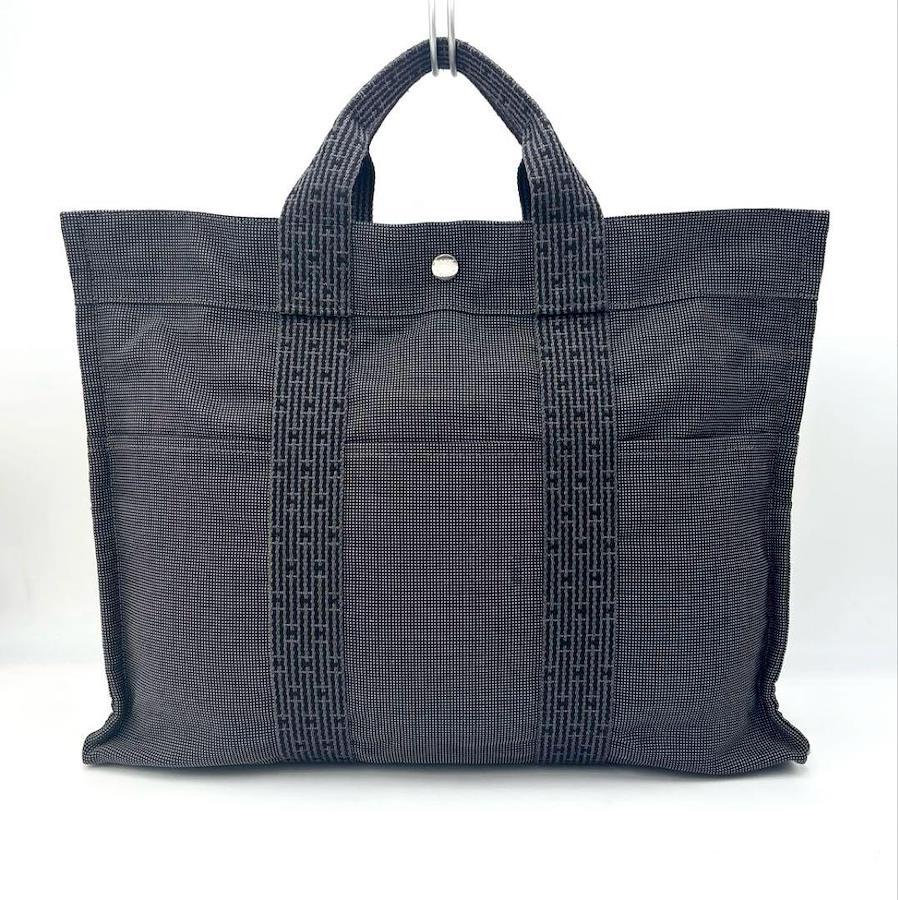 HERMES エルメス エールライン MM トートバッグ グレー系 鞄 カバン カデナ(鍵付き) ナイロン カジュアル ファスナー