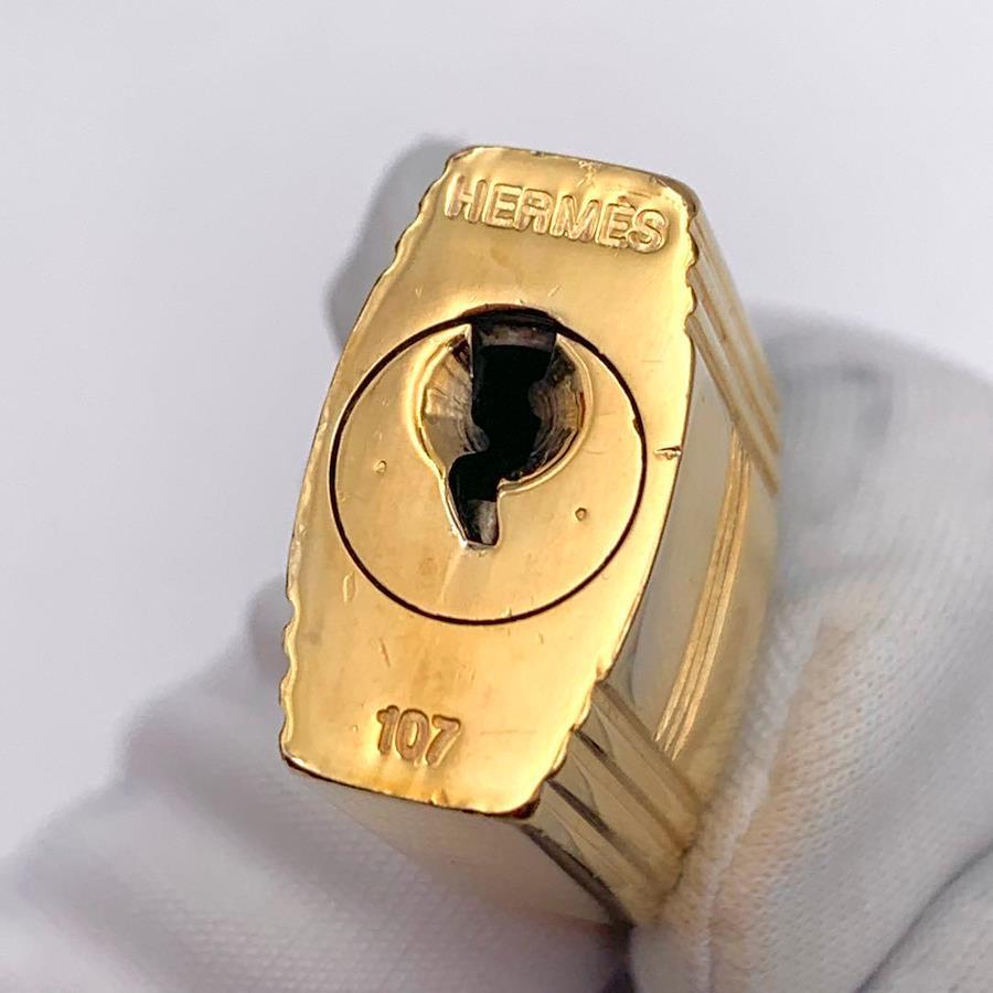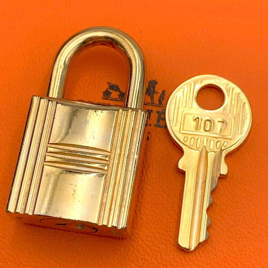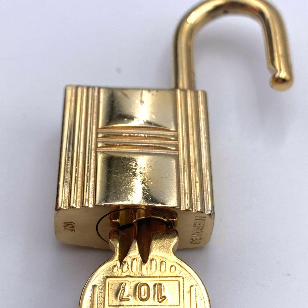 HERMES エルメス カデナ 24Kメッキ No.107 107番 鍵付き カデナキー パドロック チャーム アクセサリー 南京錠 鍵 カギ かぎ Cadena Key Padlock