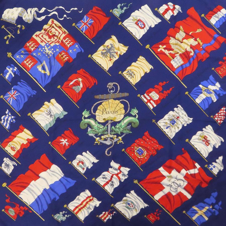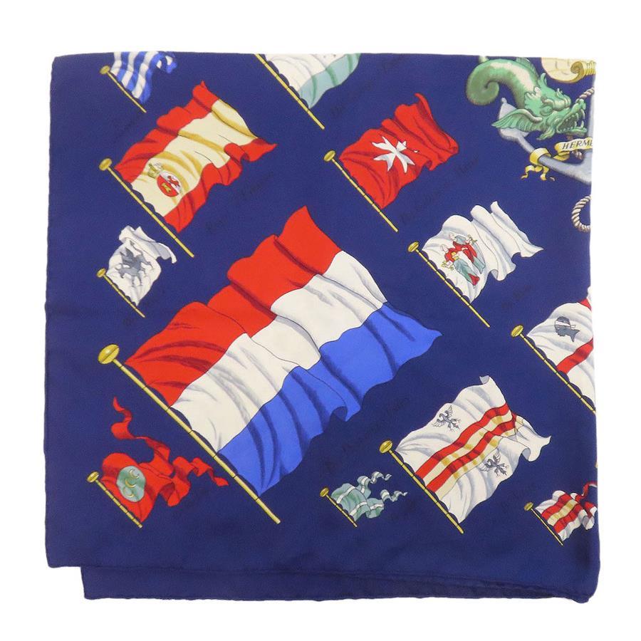 レディーススカーフHERMESカラー:ネイビー系シルクコンディションAランク