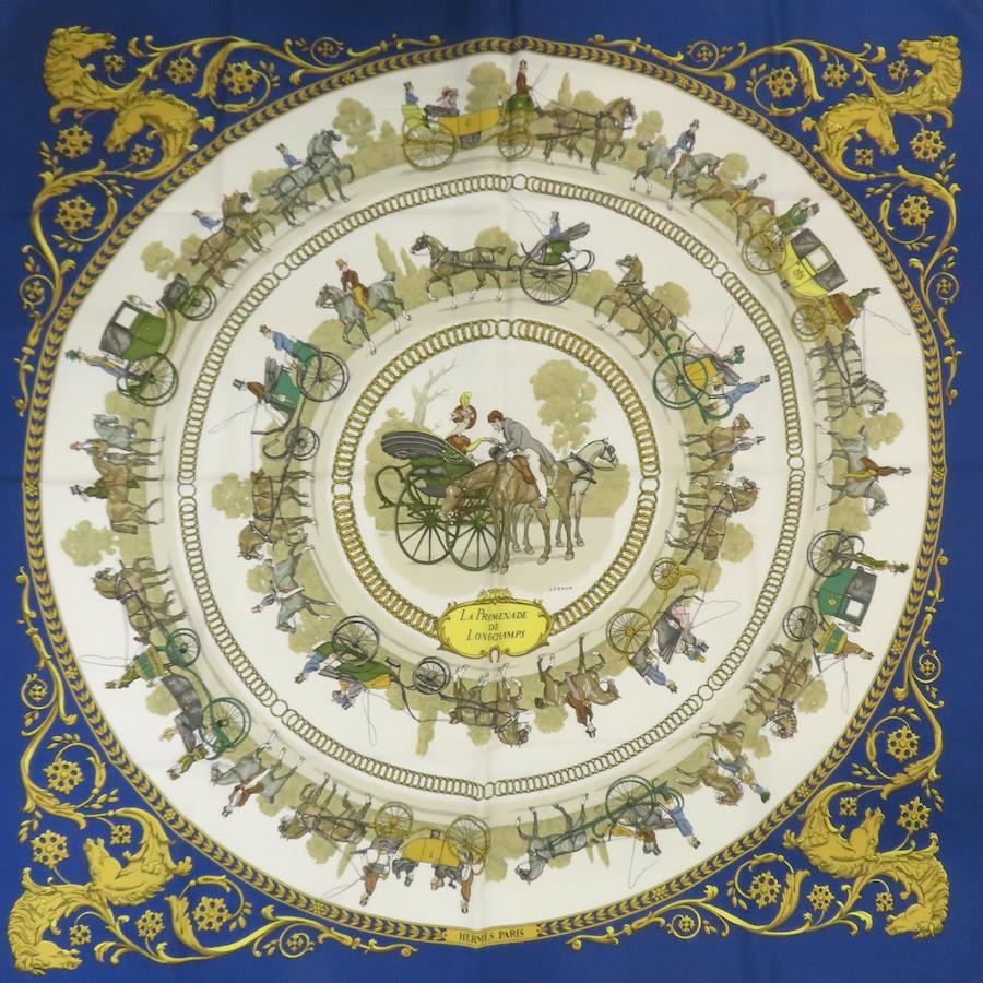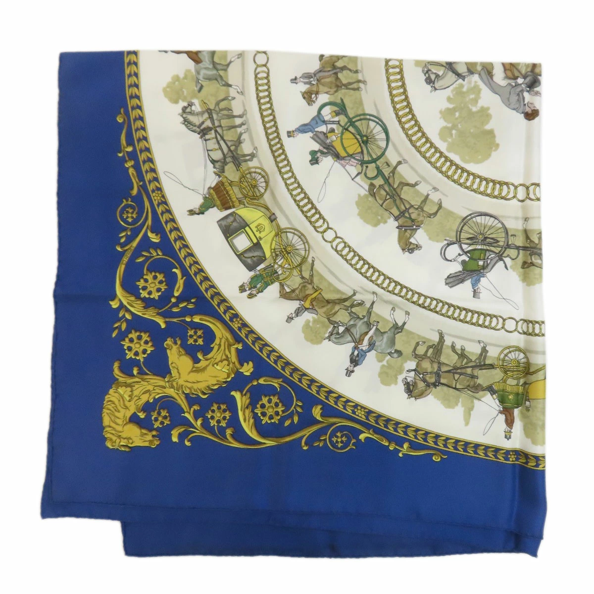 レディーススカーフHERMESカラー:ブルー系シルクコンディションAランク