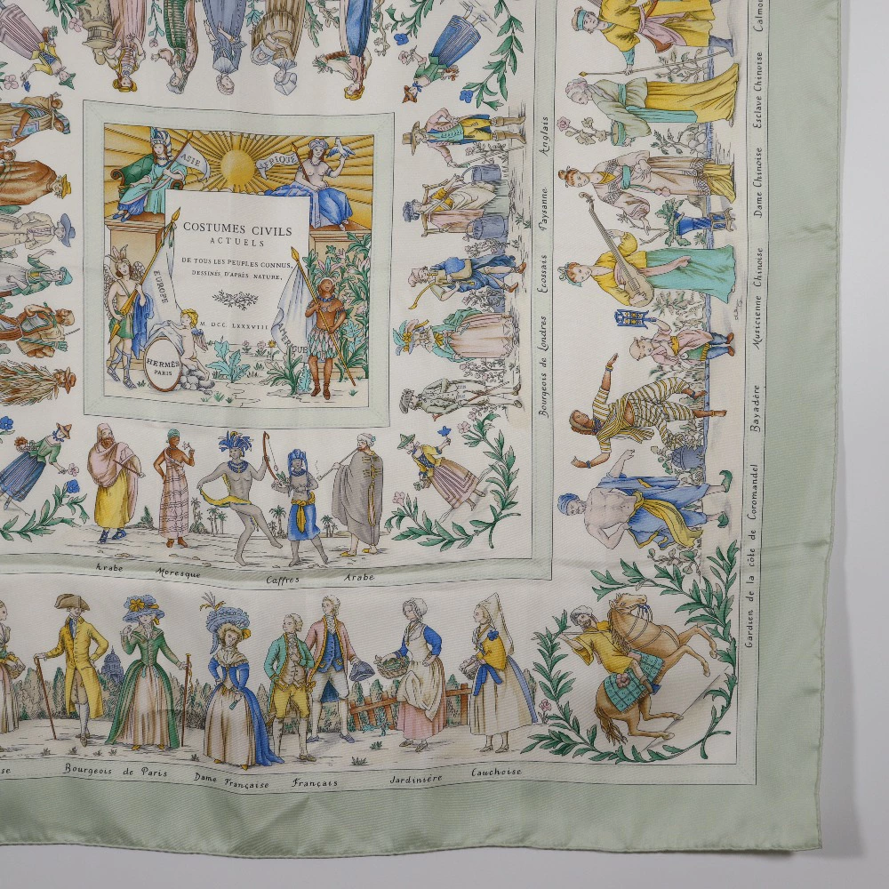 | 商品説明 | エルメスを代表する名品「カレ90」シリーズより、「COSTUMES CIVILS ACTUELS(現代市民の服装)」デザインのスカーフが登場。 フランスの伝統衣装をテーマに、市民たちの華やかな衣装や優雅な佇まいを精緻な筆致で描いた、アートのような逸品です。 淡いグリーンの縁取りが上品なアクセントとなり、装いにクラシカルで洗練された印象を与えます。 シルク100%の滑らかな肌触りと、美しい発色が魅力のエルメススカーフは、首元やバッグに結ぶだけでエレガントな雰囲気を演出。 コレクターズアイテムとしても高い人気を誇るデザインです。 |