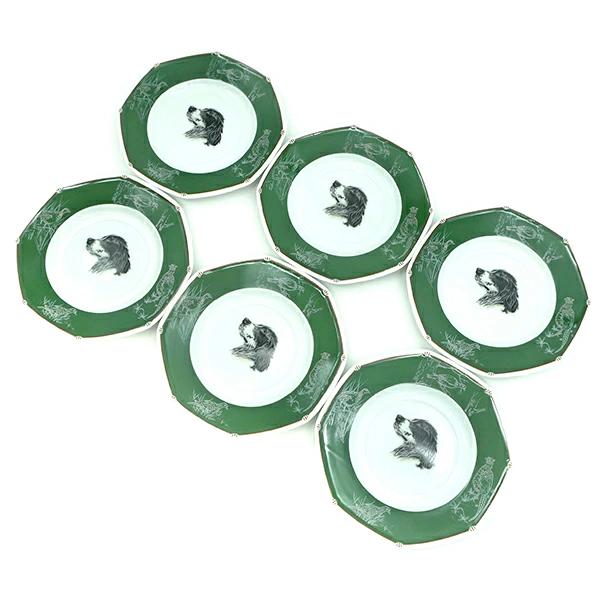 検索用キーワード:【【 エルメス HERMES 食器 シャス 犬 プレート 6枚セット 磁器 ホワイト×グリーン緑 八角皿 6枚セット - メンズ レディース ユニセックス【箱】 定番 人気 美品 【中古】】 【エルメス HERMES】【-】