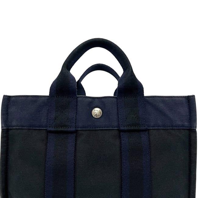 ☆---- 商品について ----☆エルメス ハンドバッグ ドーヴィル PM ec-24330 ブラック ネイビー 美品 キャンバス 中古 HERMES ホック 軽い ミニバッグ トートPM 紺色 黒 ヴィンテージ メンズ レディース 定番 人気 シンプル ミニトート トートバッグ ブランド 本物 鑑定済み