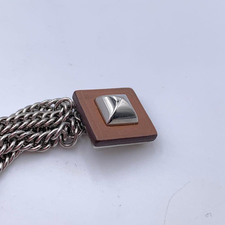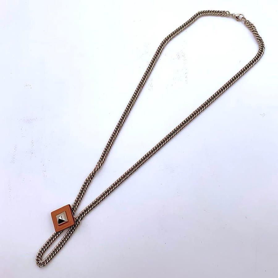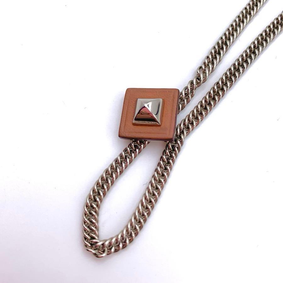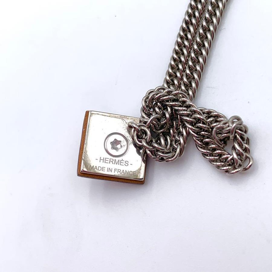 HERMES エルメス グルメット エスケトル PMネックレス シルバー レザー ブラウン