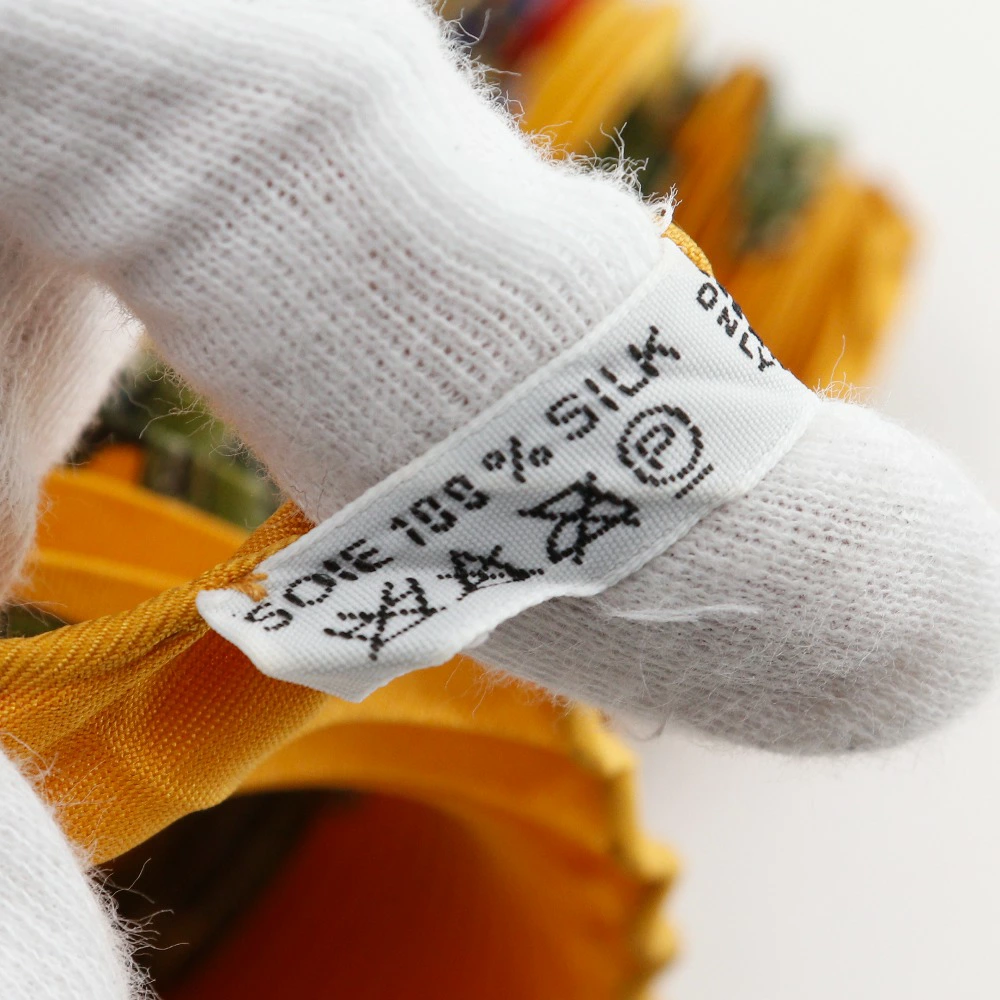 Hermès Pleated Carré Scarf, Les Tambours, Silk, Orange, Women's, Pre-owned, Rank A
