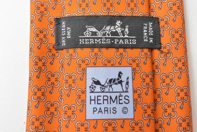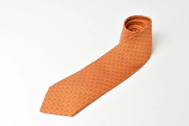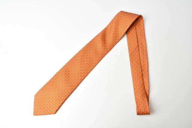 HERMES シルクツイルタイ オレンジ/クローバー 605987 TA