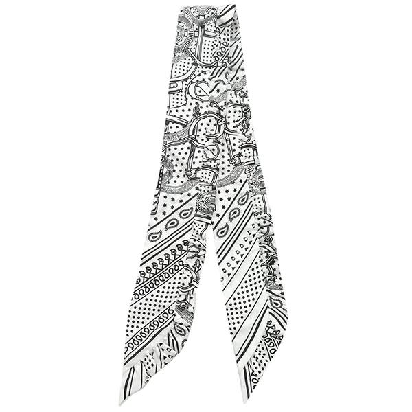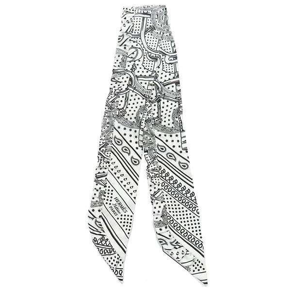 エルメス HERMES ツイリー ツイリー スカーフ シルク ホワイト×ブラック 【Frilled Eperon d'Or Bandana/フリル エプロンドール バンダナ】 - レディース 【箱】定番 人気 美品 【中古】