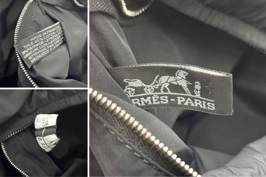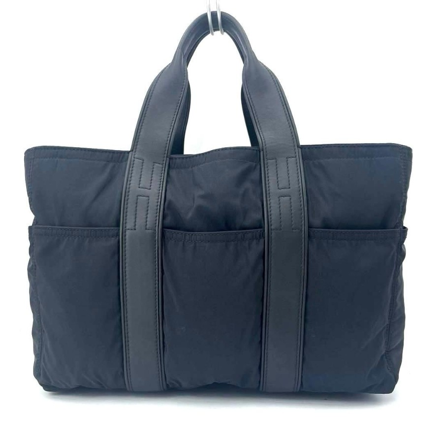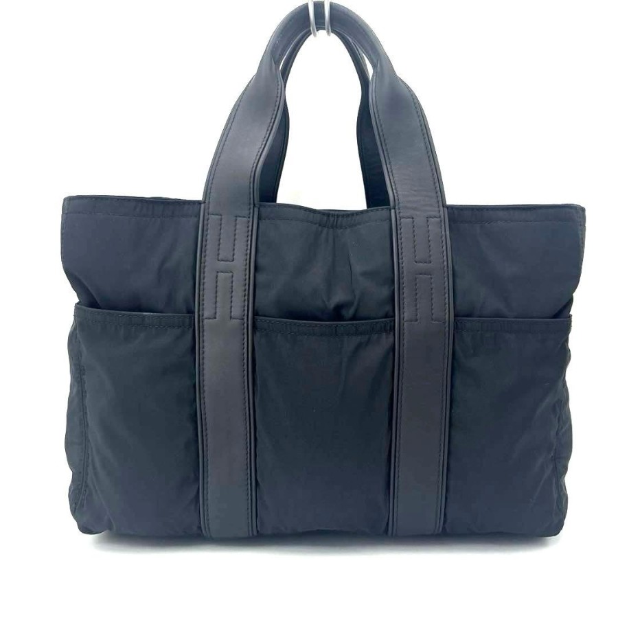 HERMES エルメス アカプルコMM トートバッグ ブラック ナイロン レザー黒 ミニトート ハンドバッグ メンズ レディース 鞄 カバン