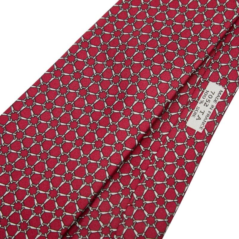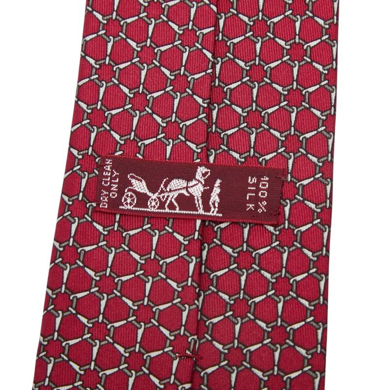 Hermes all-over pattern tie, wine red, silk, men's, HERMES [Used]