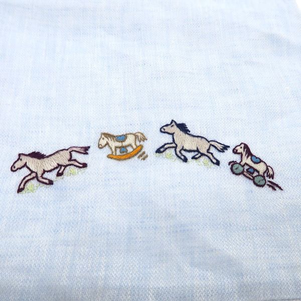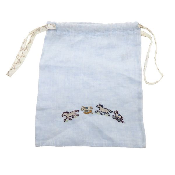 エルメス人気のベビーラインより巾着型の『ベビーポーチ』が入荷いたしました☆やわらかなブルーカラーに馬や木馬の刺繍が施された可愛らしいデザイン。紐にもデザインがあり、内側はポケット等のないシンプルな仕様です。状態はBランクで、本体の型崩れ、表面のスレ、シワ、多少のほつれ、紐のスレ、内側のスレなどが見受けられますが、使用に支障のあるダメージはなくまだまだご愛用いただけますよ!※付属品:なし