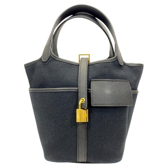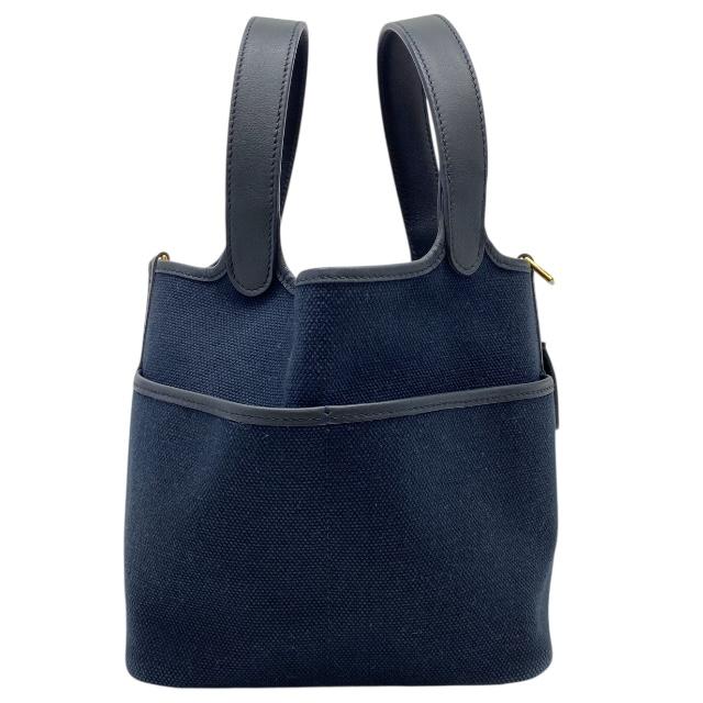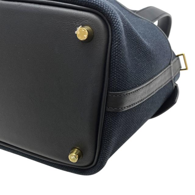 【ブランド】 HERMES エルメス【商品名】 ピコタンロックカーゴ PM ハンドバッグ【商品番号】-【カラー】 ブルーマリン/ブラック【サイズ】 横:約13cm 縦:約18cm 奥行:18cm 持ち手高さ:約12cm【素材】トワルゴエラン/ヴォースイフト【付属品】 冊子/鍵/カデナ/保存袋【ランク】 Aランク【コメント】 外面:薄汚れ(写真参照) 底面金具保護シールはがれ(小) 中面:薄スレ(小)【管理番号】 1008b4988a商品情報