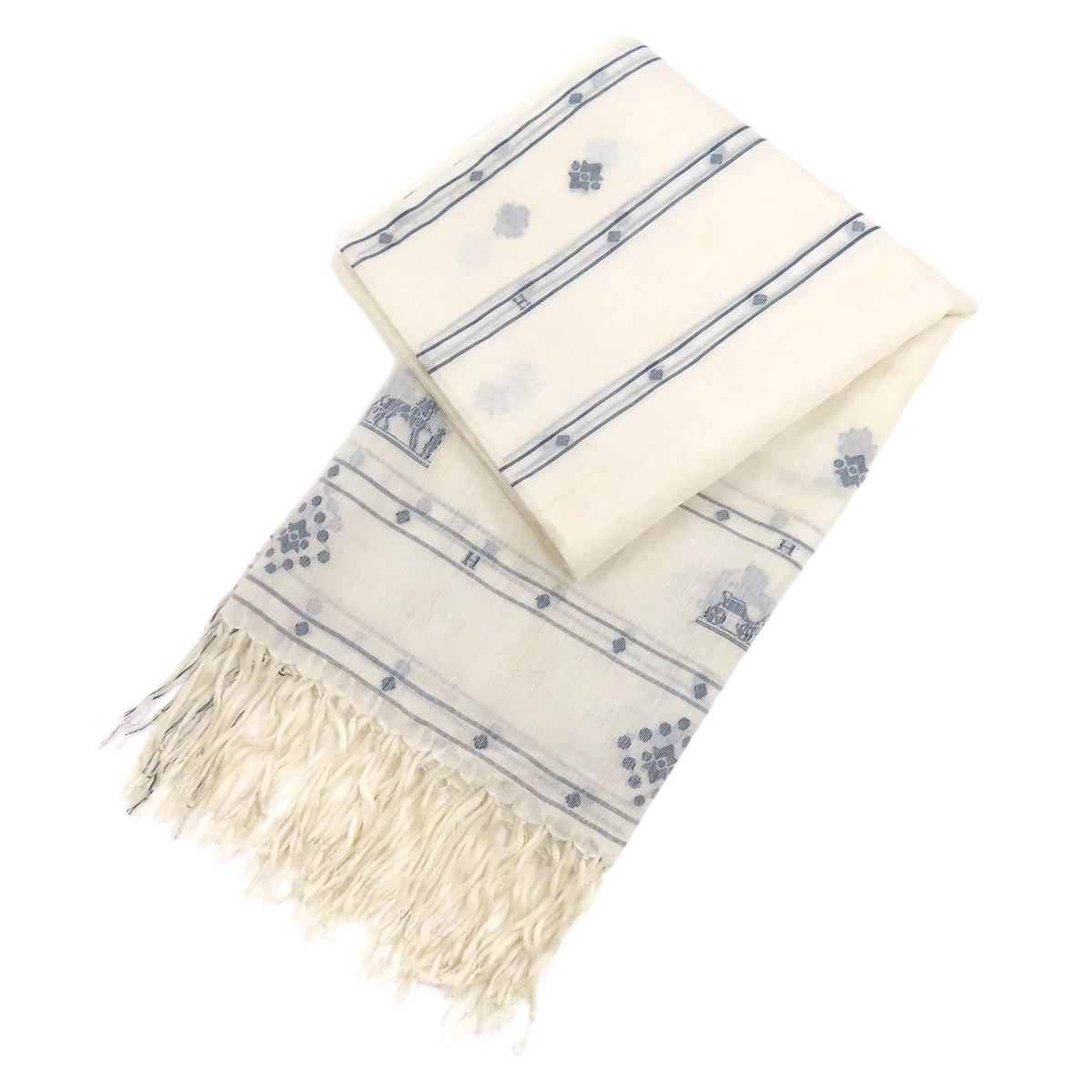 レディースストールHERMESカラー:ホワイト系シルクコンディションAランク