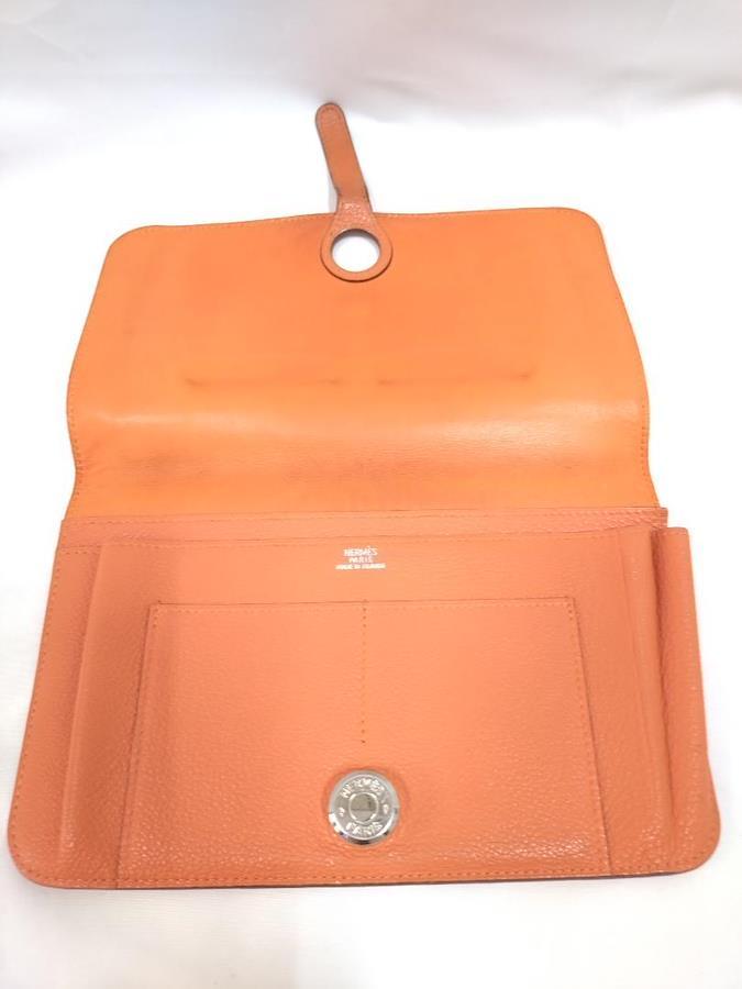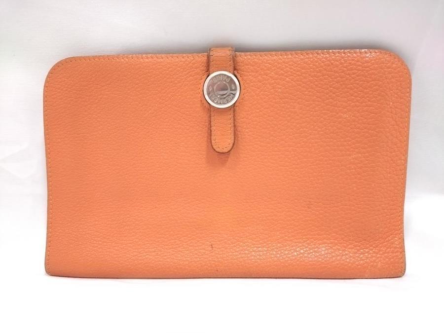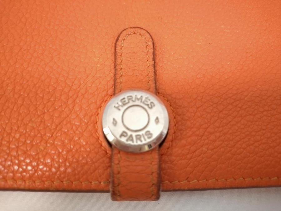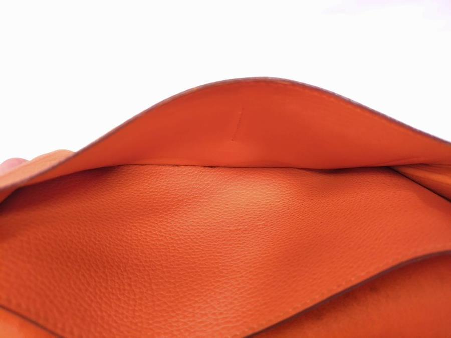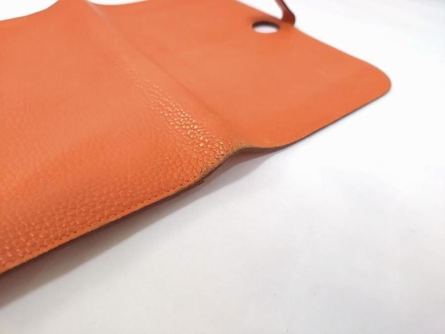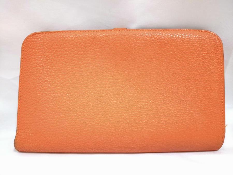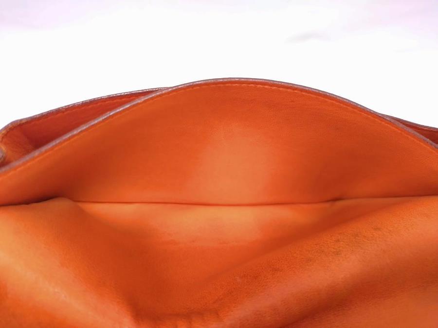◇商品状態- 色: オレンジ- 素材: レザー- デザイン: 二つ折り財布- 特徴: ボタン留め- 外側角に擦れ、汚れ多少あり・内側に汚れ多少あり