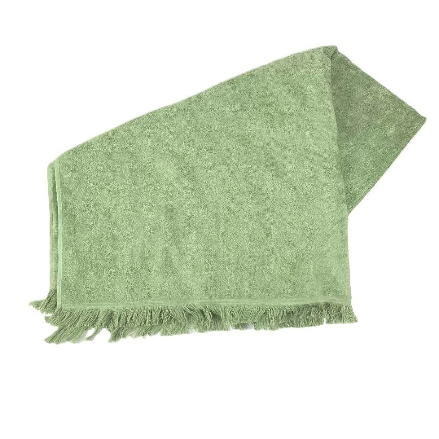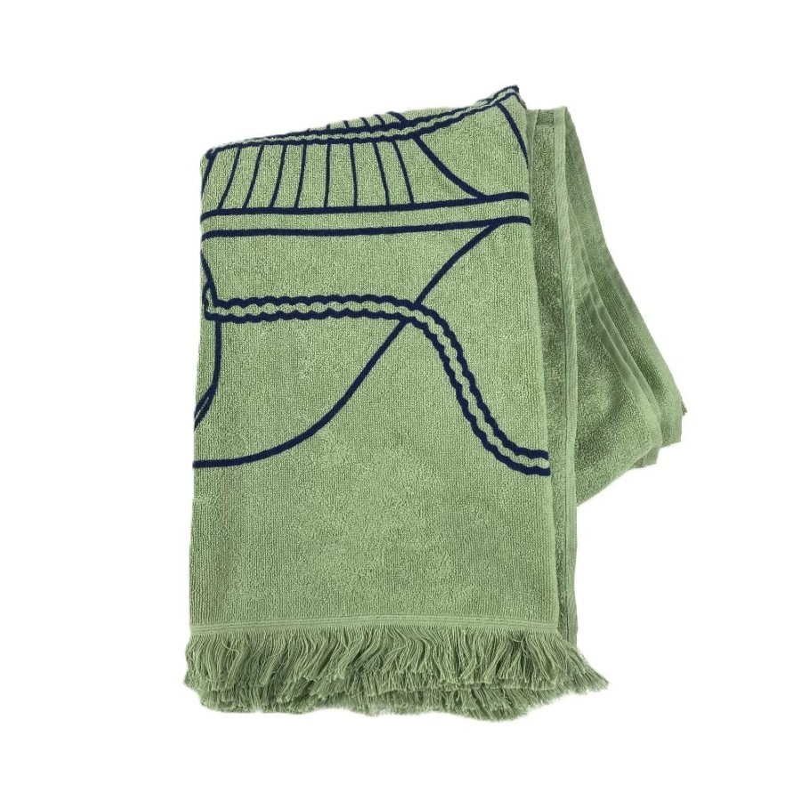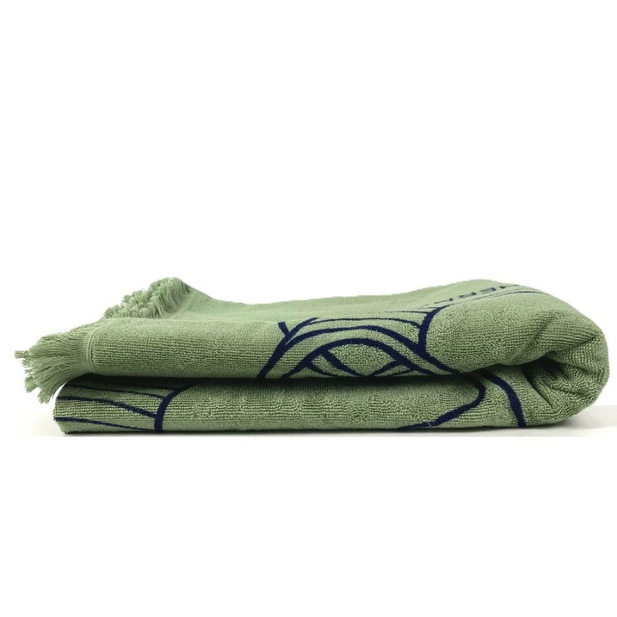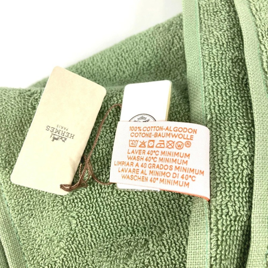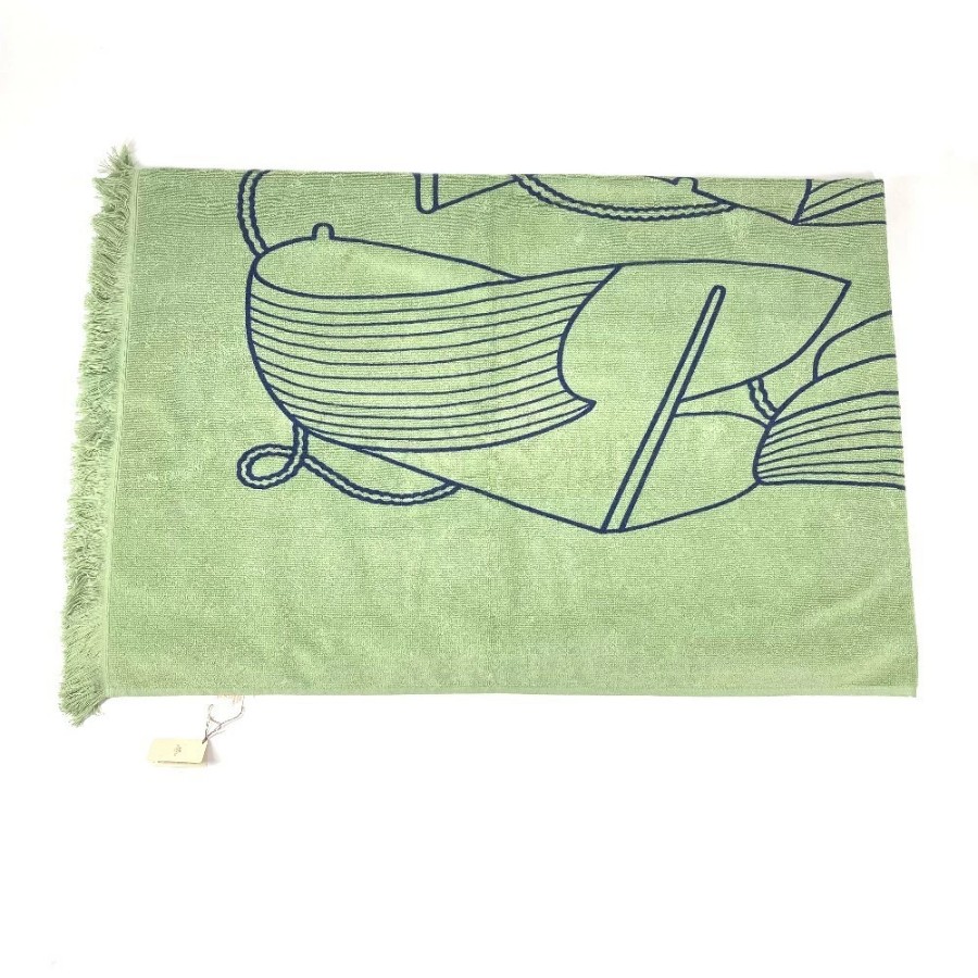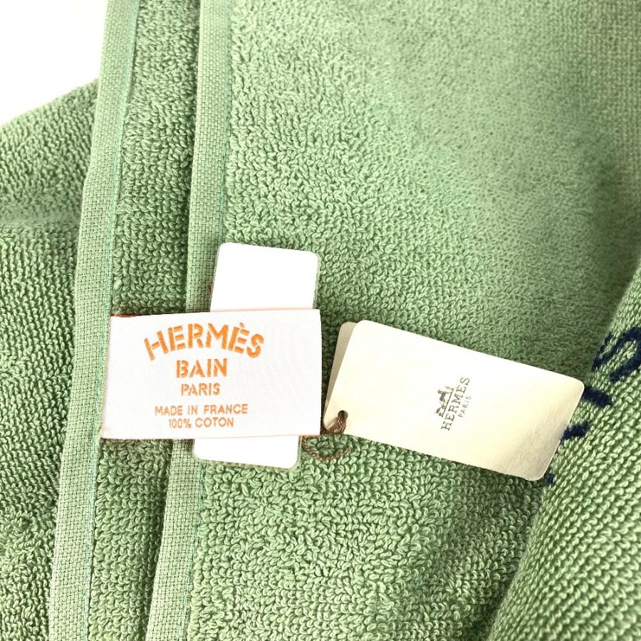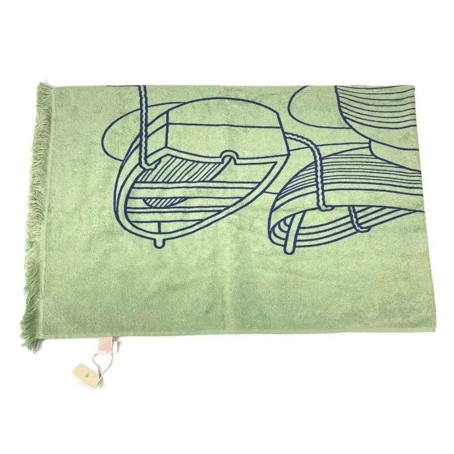 HERMES DRAP DE PLAGE YACHTING THALASSA Bath Towel, Interior Decor, Throw, Blanket, Fringe, Cotton, Unisex, Green, Unused [Pre-owned]