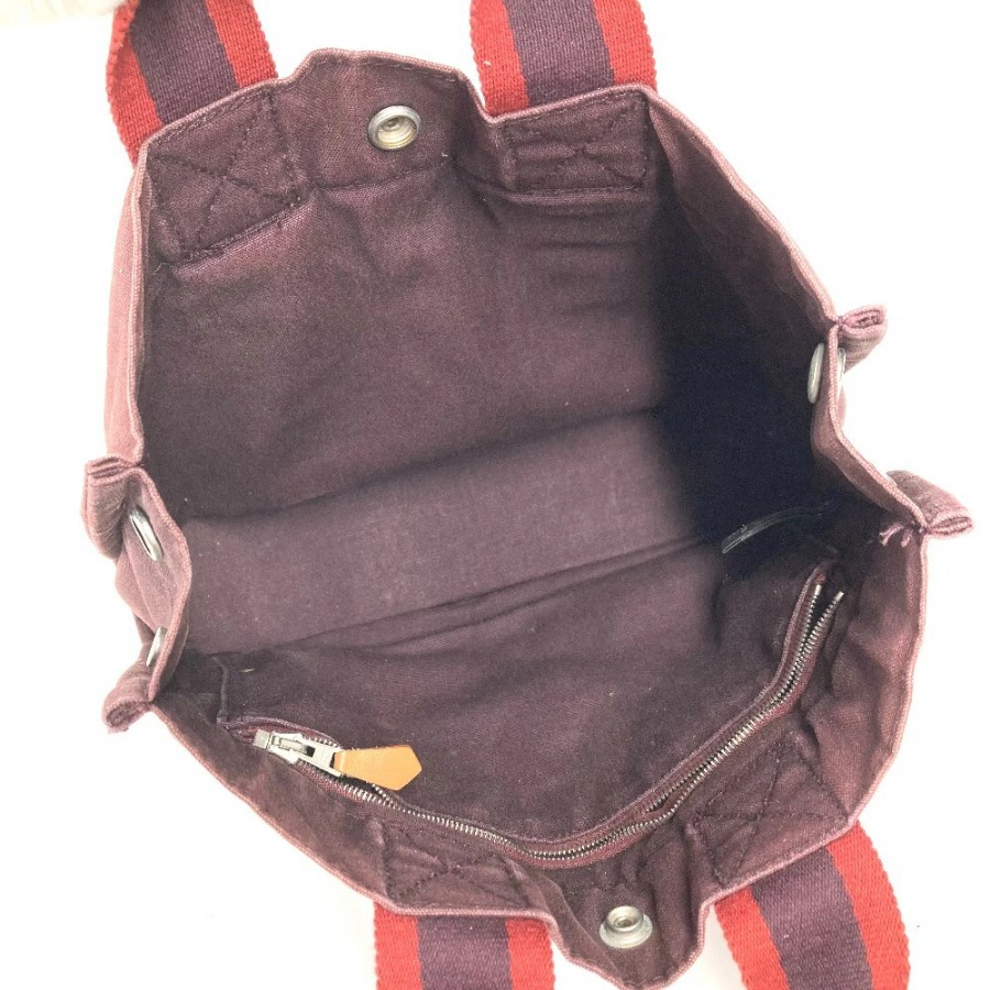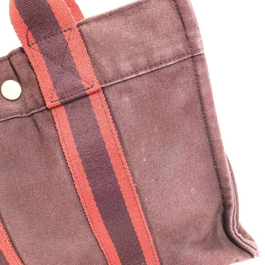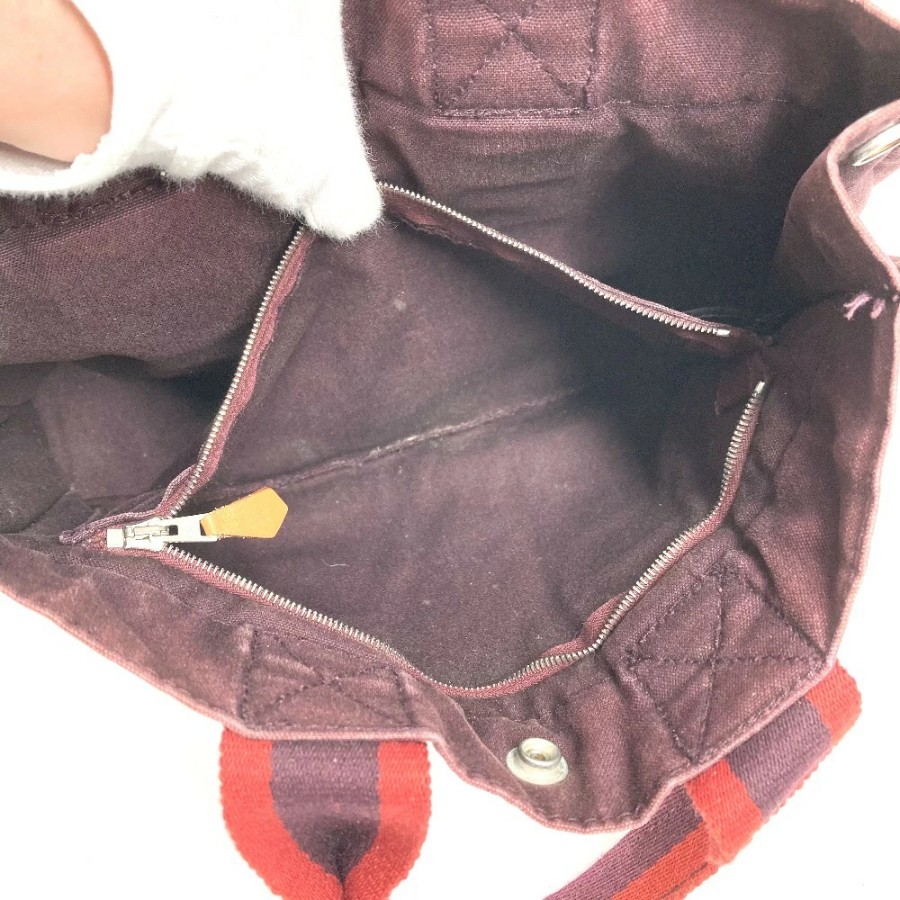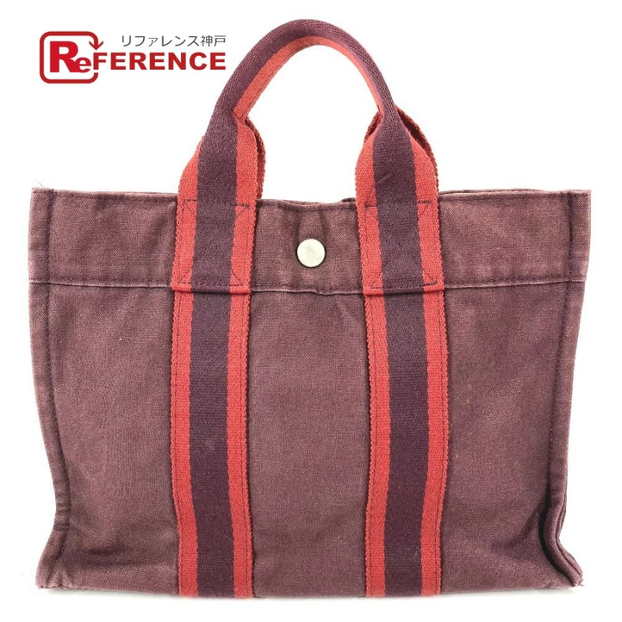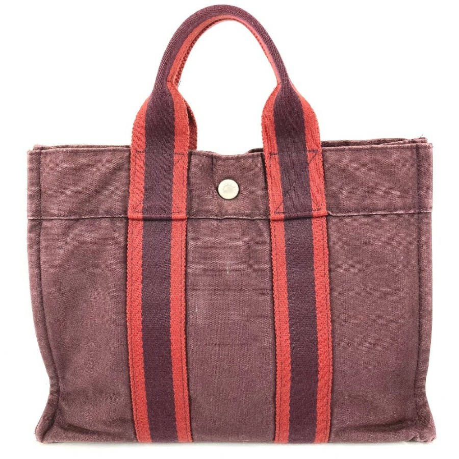 HERMES Fourre-Tout PM Tote Bag/Handbag, Cotton, Unisex, Wine Red [Pre-owned]