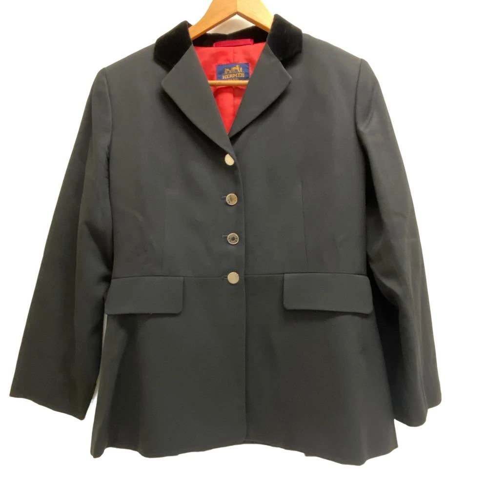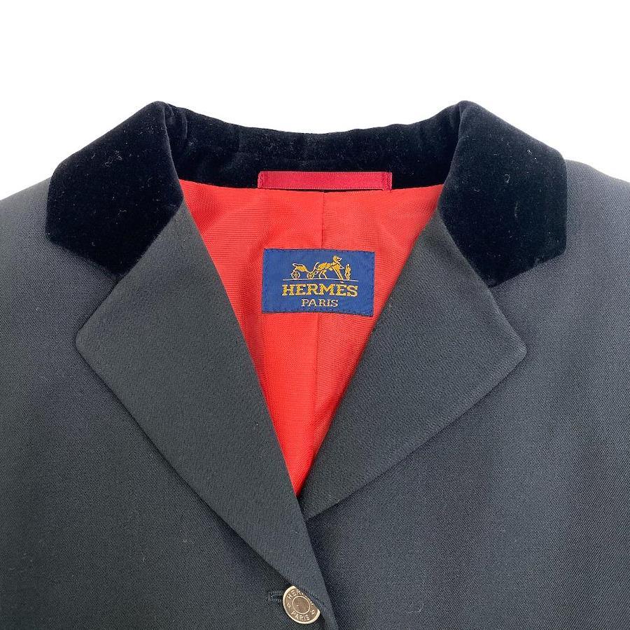 商品名 | HERMES/エルメス 42 セリエボタン ベロア切替襟 テーラードジャケット ブラック レディース |