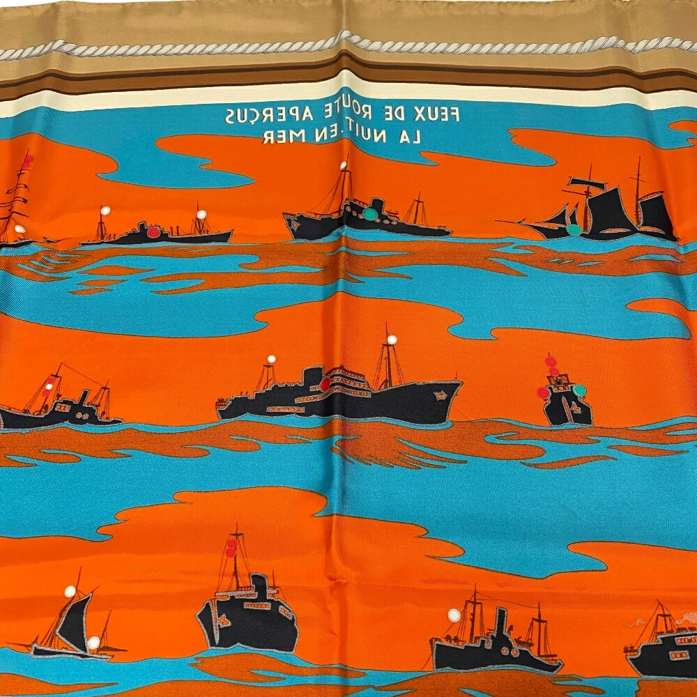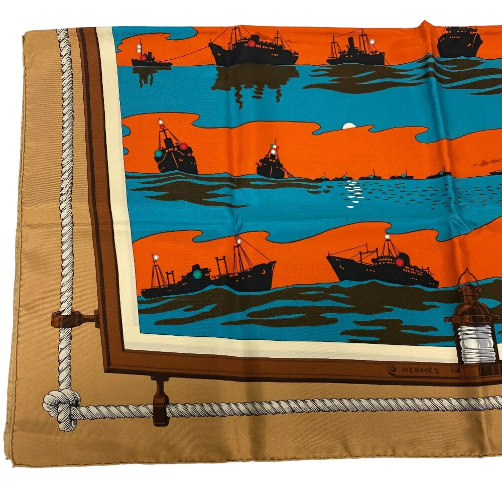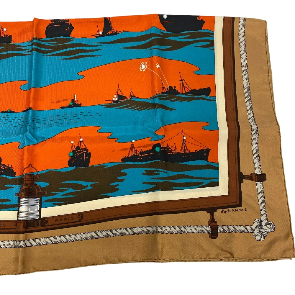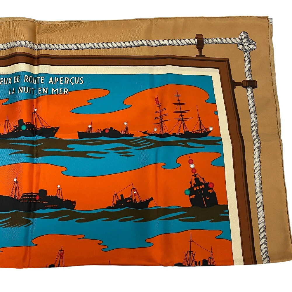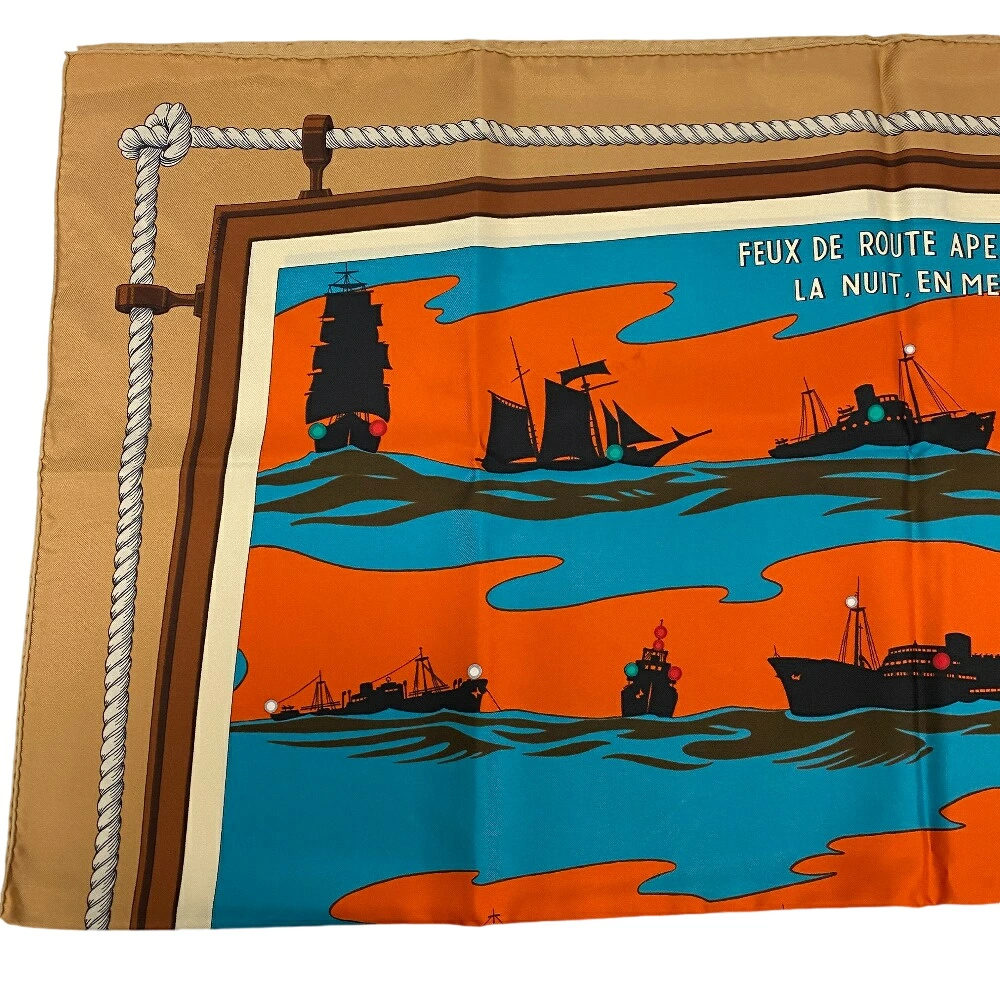 商品名 | HERMES/エルメス カレ90 FEUX DE ROUTE APERCUS LA NUIT,EN MER 夜の海に光る航路灯 スカーフ ブラウン レディース |