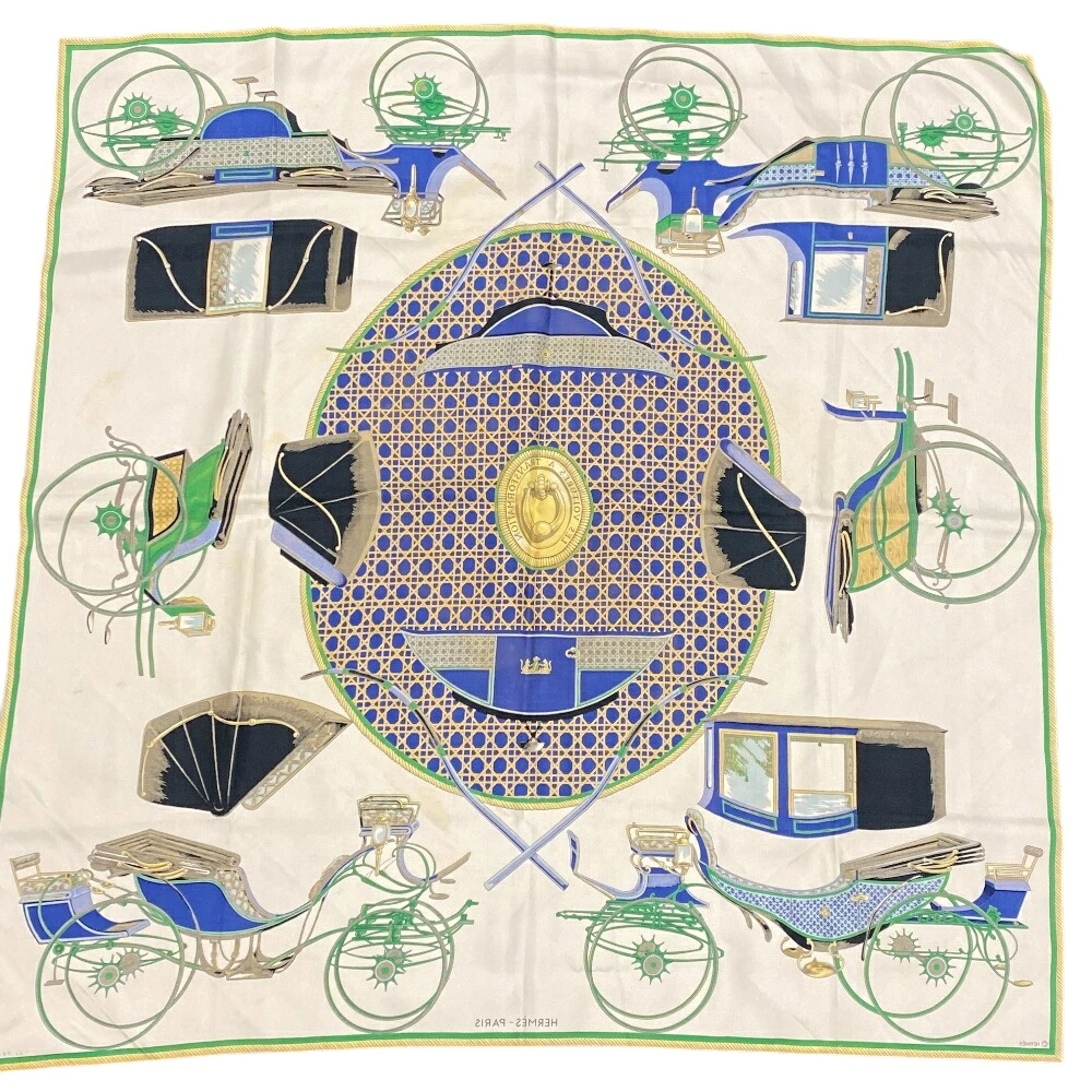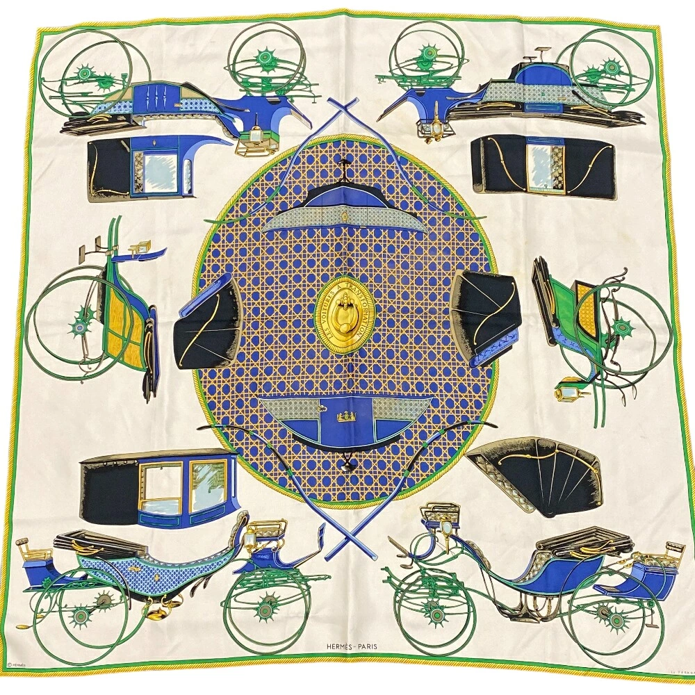 商品名 | HERMES/エルメス カレ90 les voiture スカーフ ブルー ユニセックス |