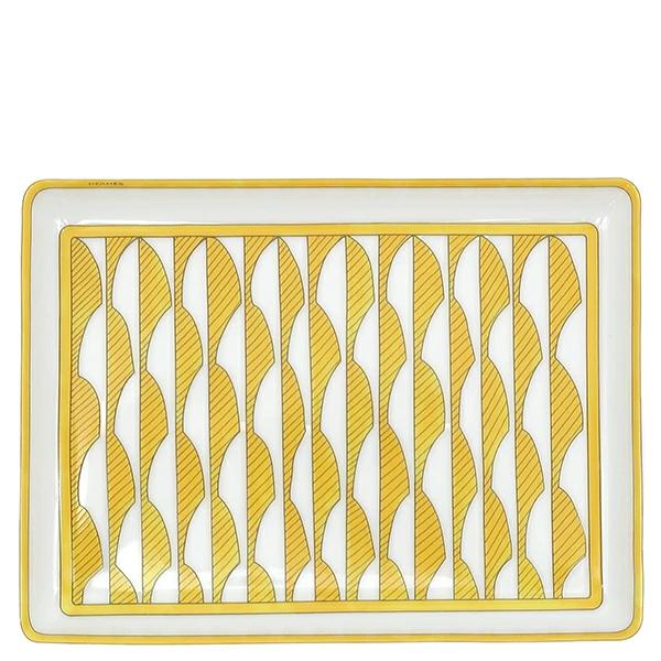 エルメス HERMES 長方形プレート ソレイユ ドゥ エルメス PM ソレイユ 食器 磁器 ポーセリン イエロー×ホワイト 新品 未使用 お皿 P046089P メンズ レディース ユニセックス 【箱】 【中古】