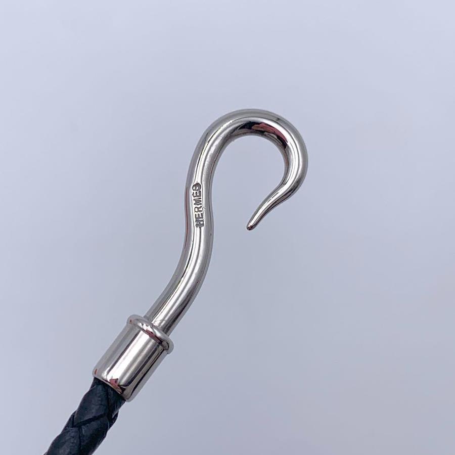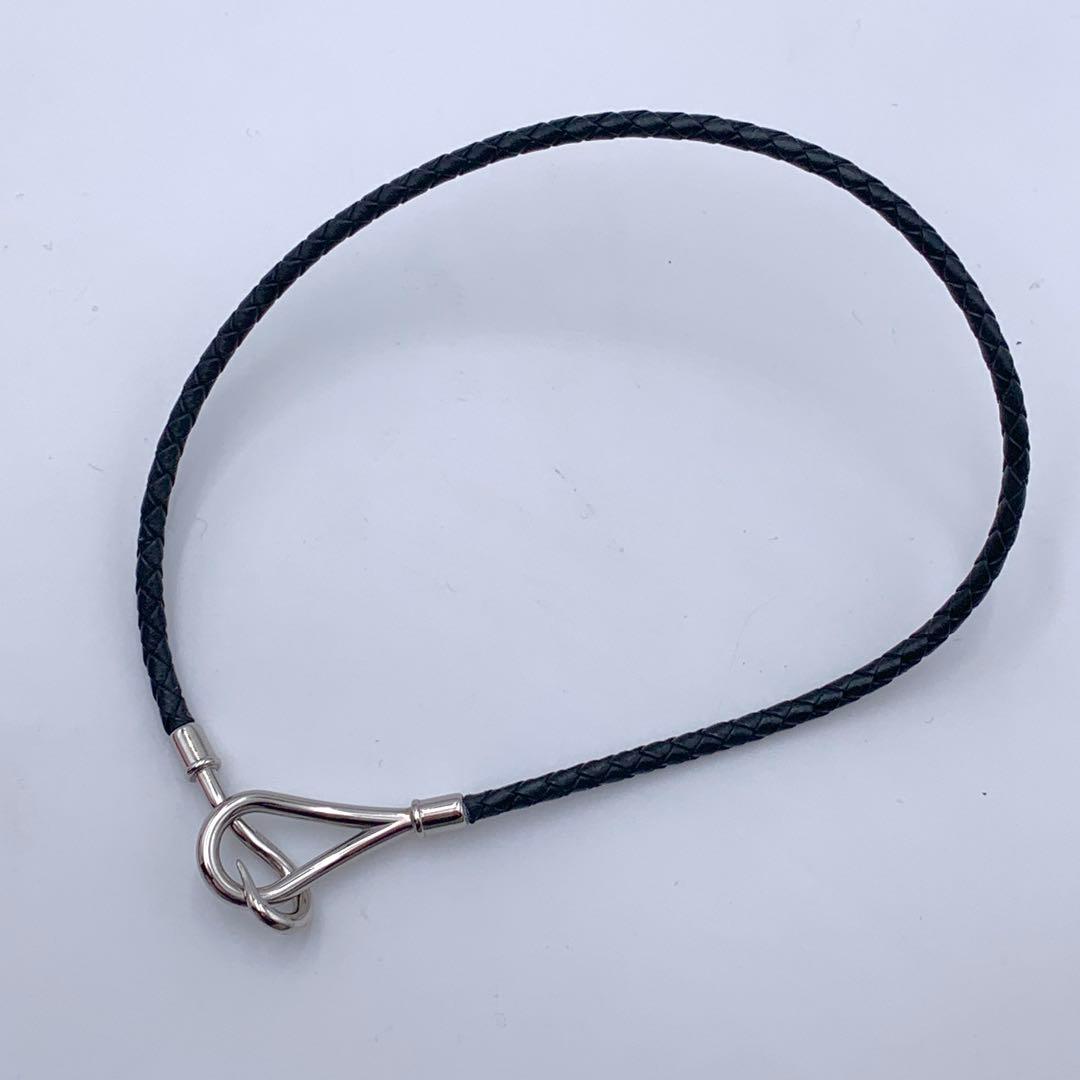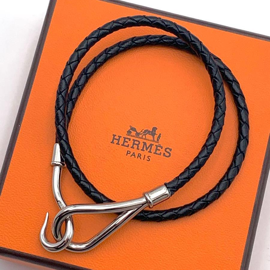 HERMES エルメス ジャンボ バングル 編込み 2連ブレスレット チョーカー シルバー ブラック レザー 本革
