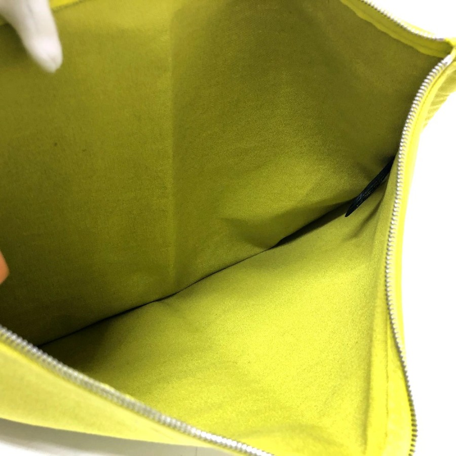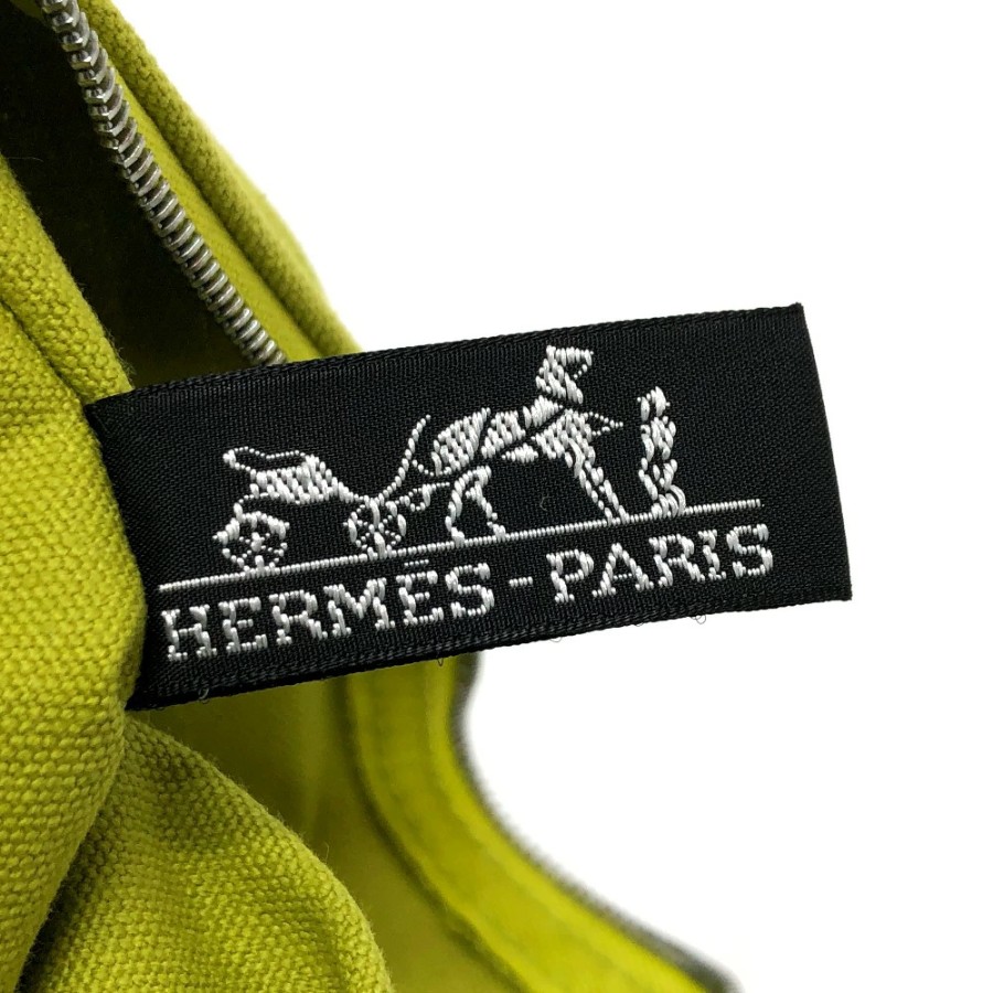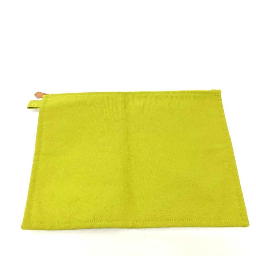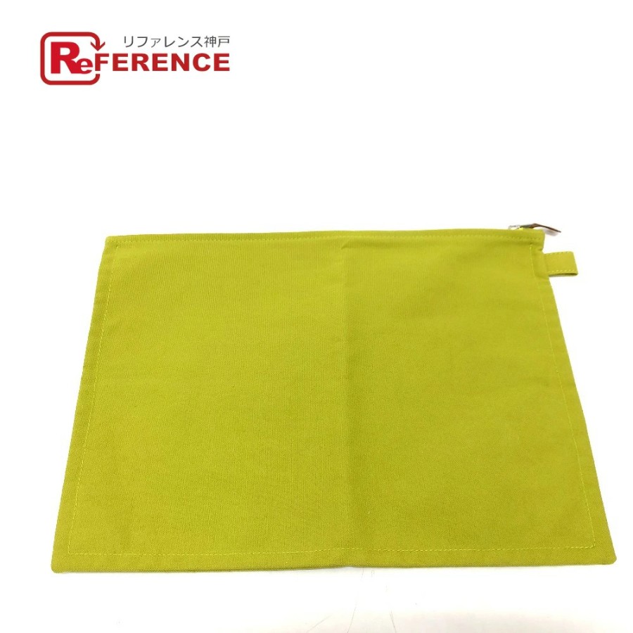 HERMES Large Pouch, Canvas, Unisex, Green (Used)