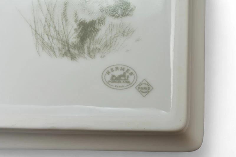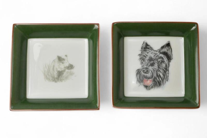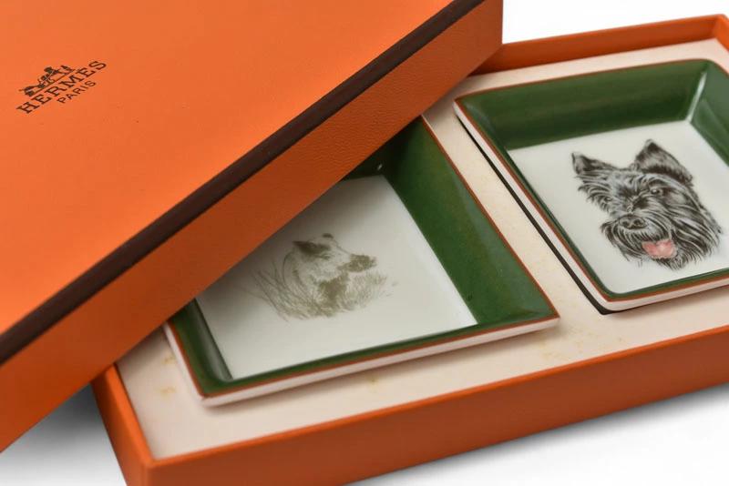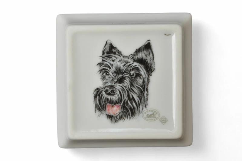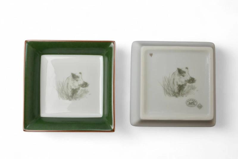 商品説明 | エルメスのユニークな世界観が表現された、イノシシとスコティッシュテリアが描かれたミニプレート。高級感のある陶器素材に、アニマルモチーフが遊び心を添えます。インテリアとして飾るのはもちろん、アクセサリーや鍵、小物入れとしても活躍。エルメスらしいアートと品質を感じられる逸品です。小物置きなど多用途に使えるサイズ感で、贈り物にも最適です。 サイズ: 約W8cm×H8cm |