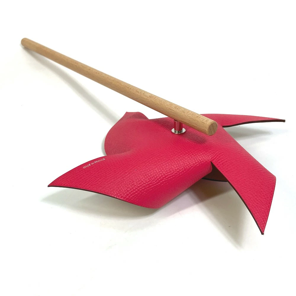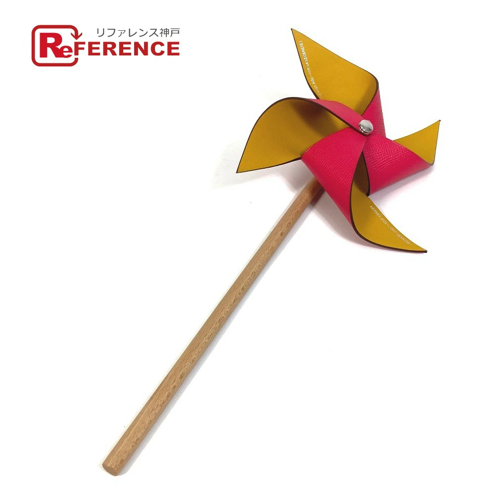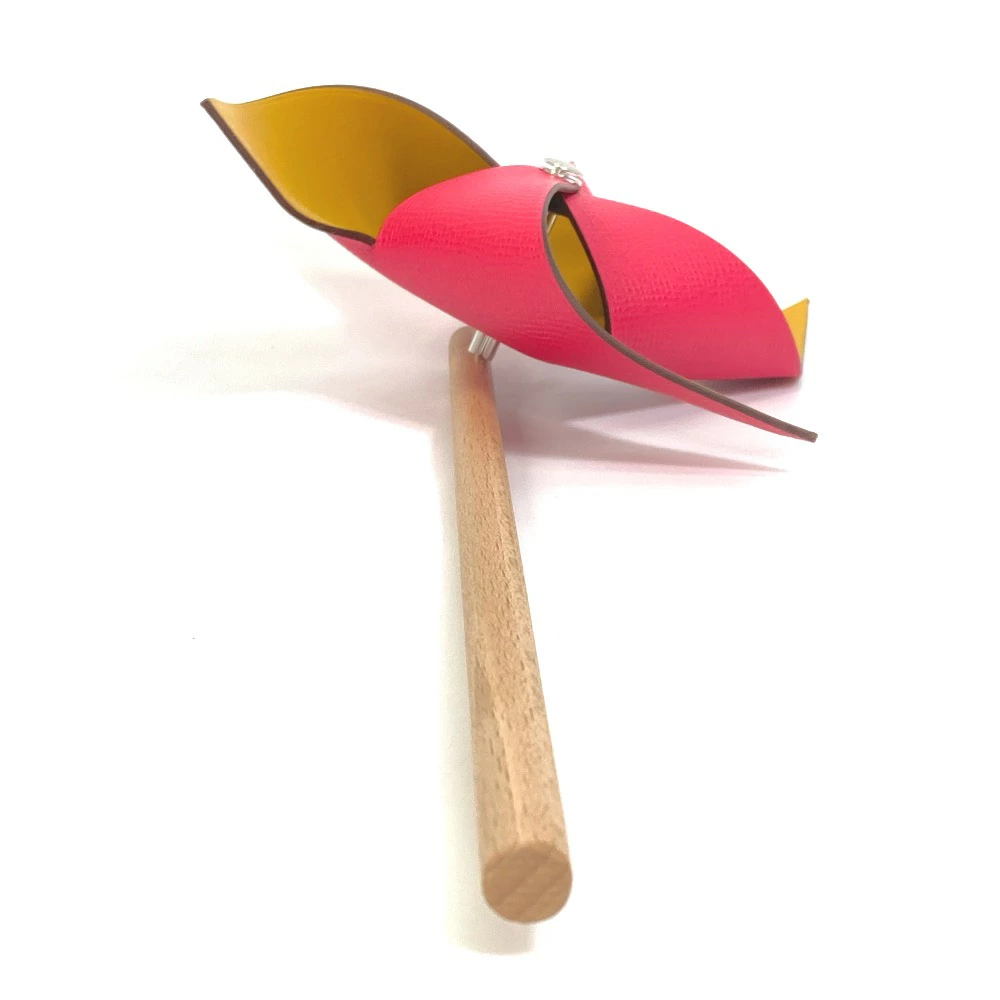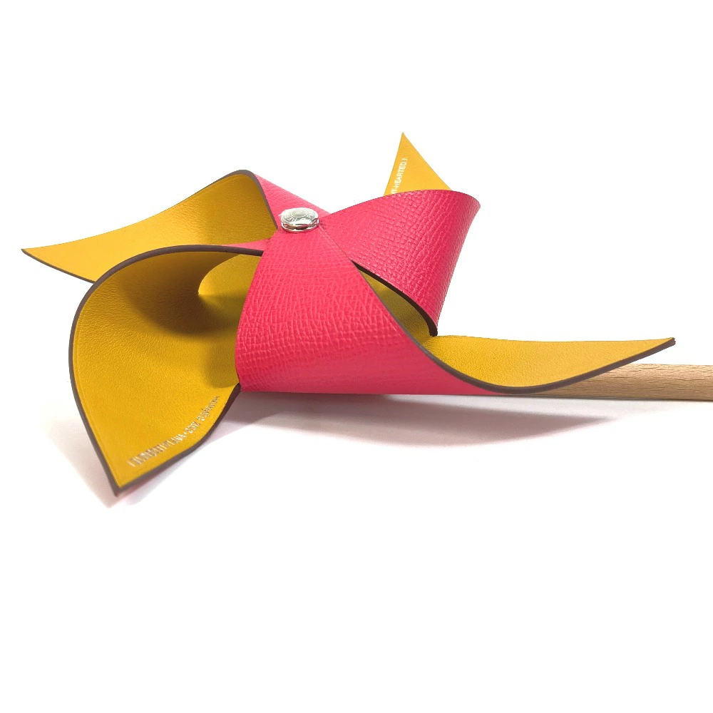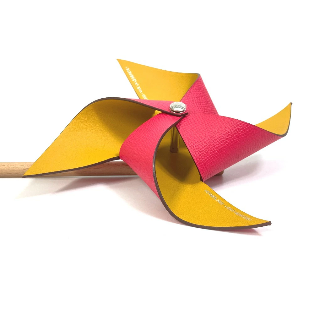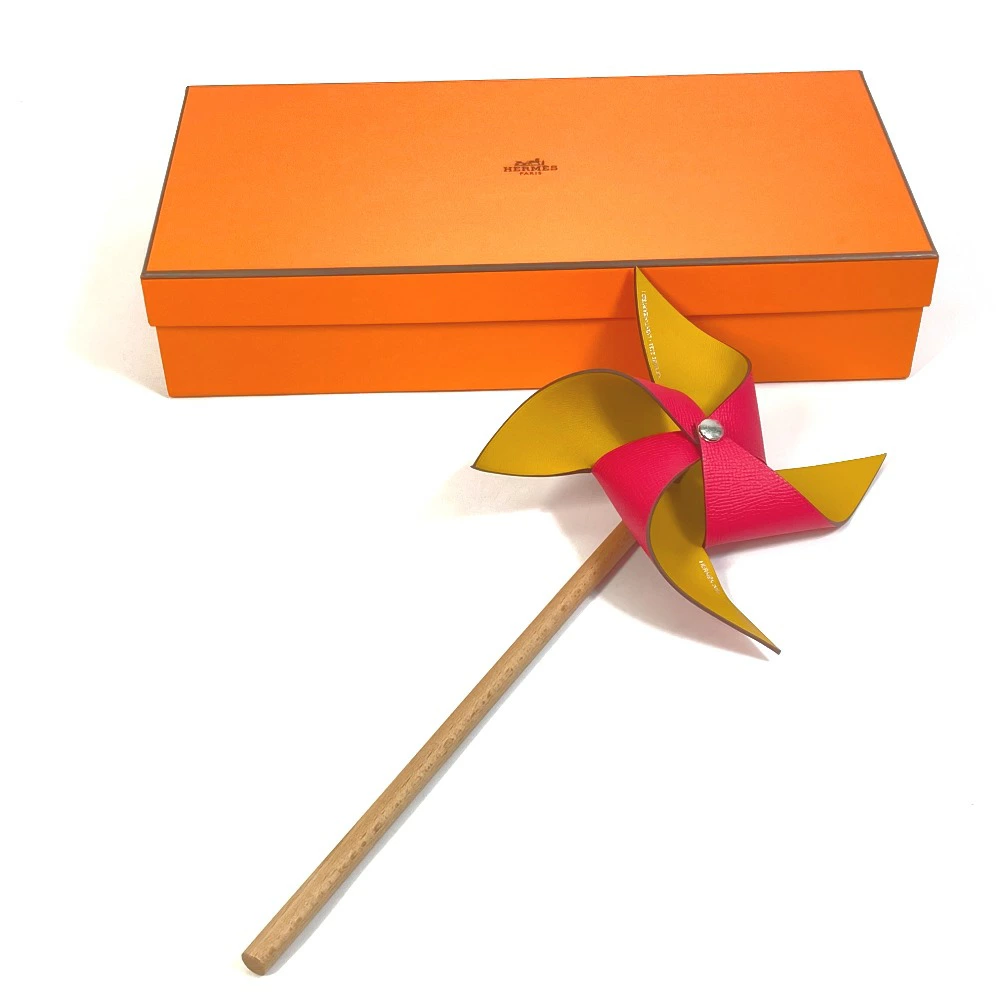 HERMES Petit H Windmill Interior 2022 Object, Epsom Wood, Unisex, Pink/Yellow, Unused, Pre-owned