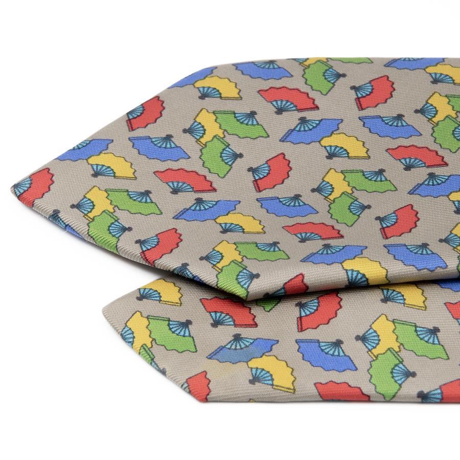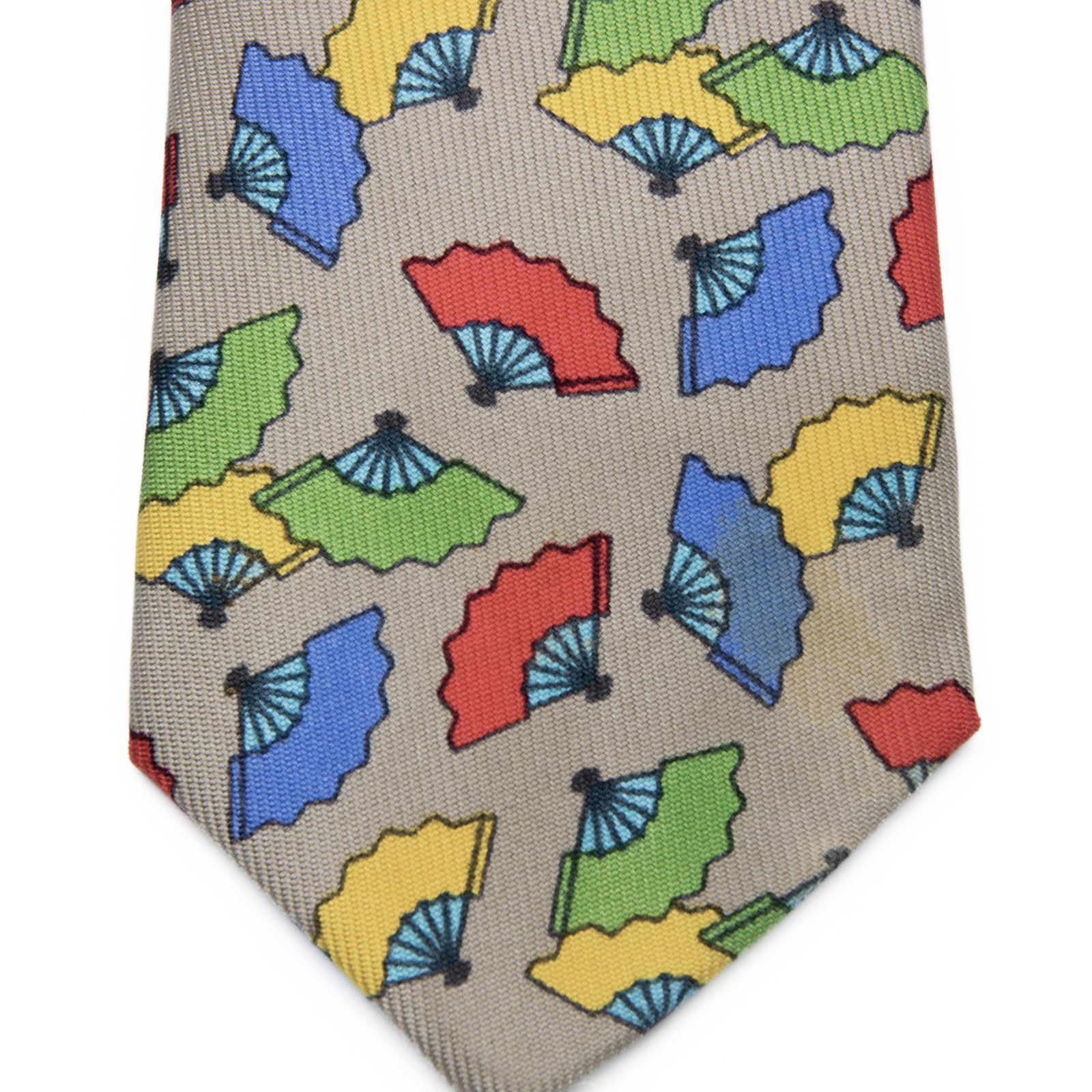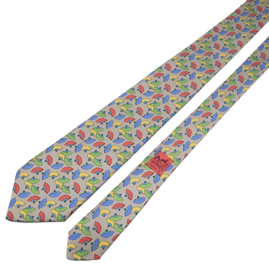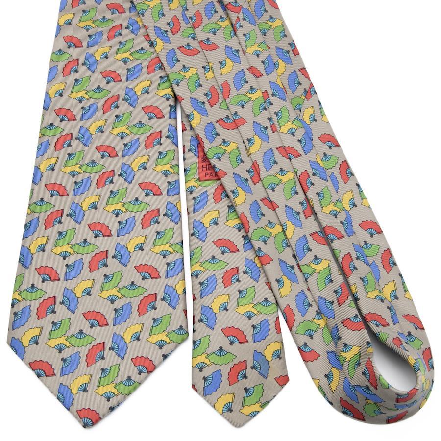 こちらは、和の心を感じさせる扇子が色鮮やかに舞う、エルメスのネクタイでございます。