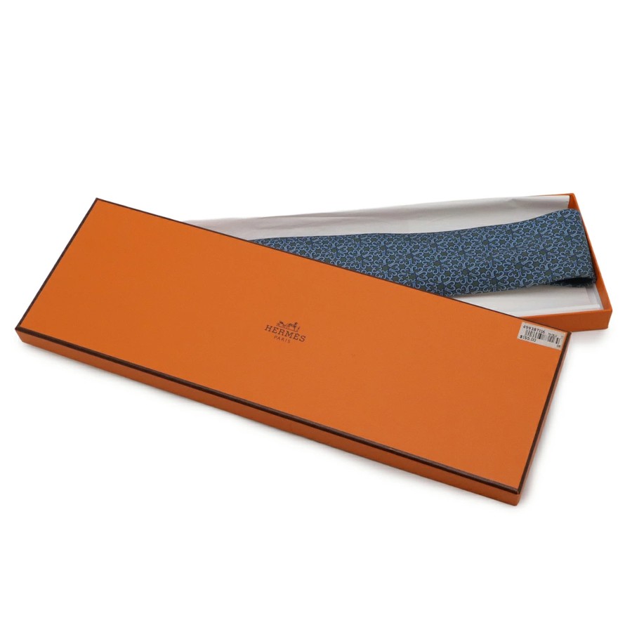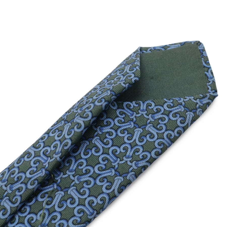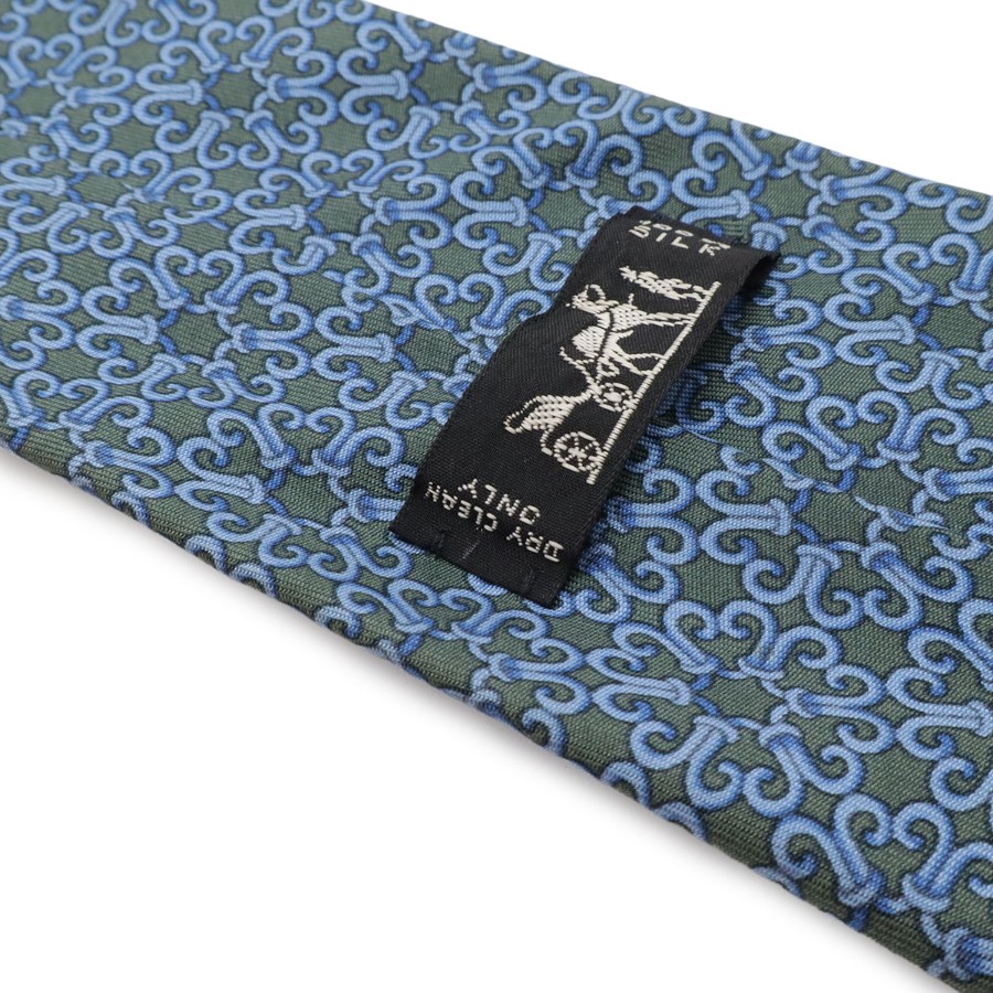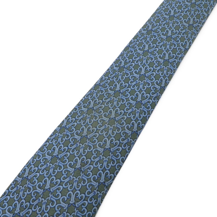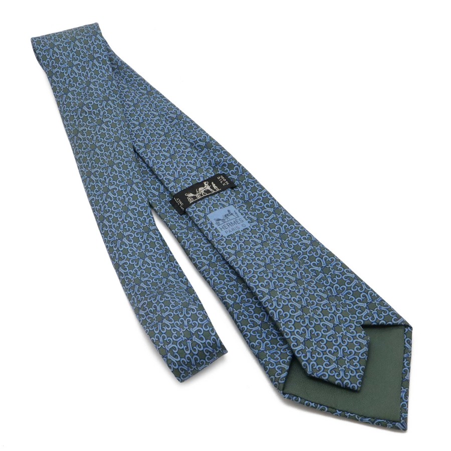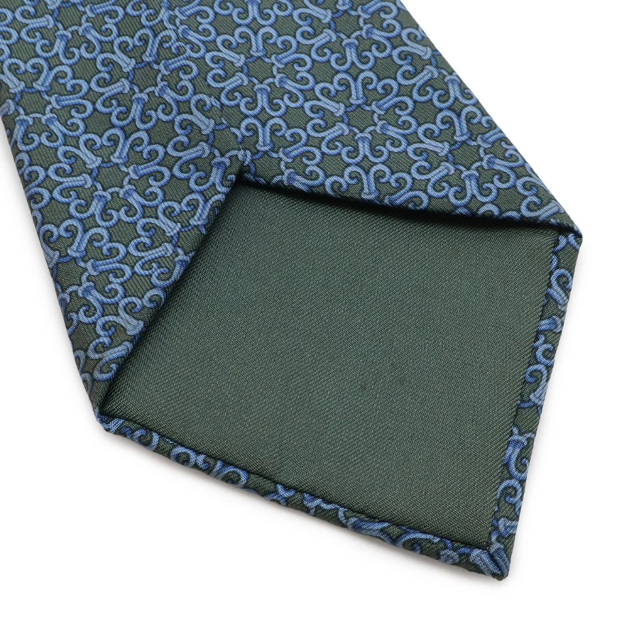 HERMES tie, all-over pattern, 100% silk, moss green and light blue. [Used]