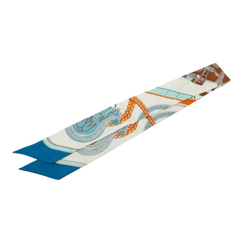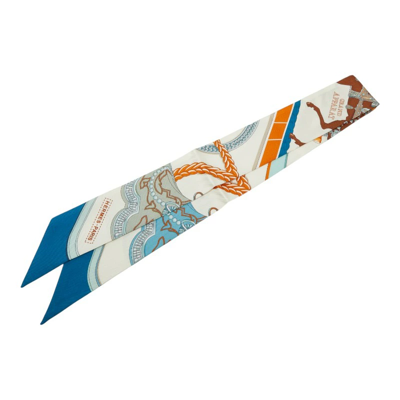 Hermes Twilly GRAND APPARAT Scarf, White Multicolor, Women's, HERMES [Pre-owned]