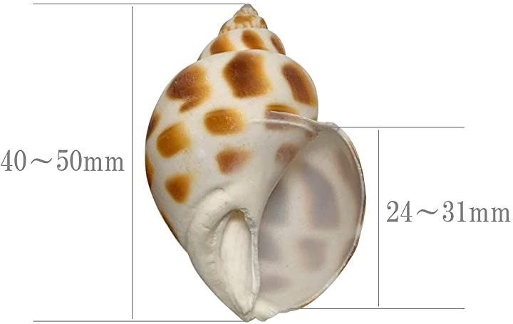 貝殻の高さ:40~50mm 口径(殻口の長さ)目安:約24~31mm