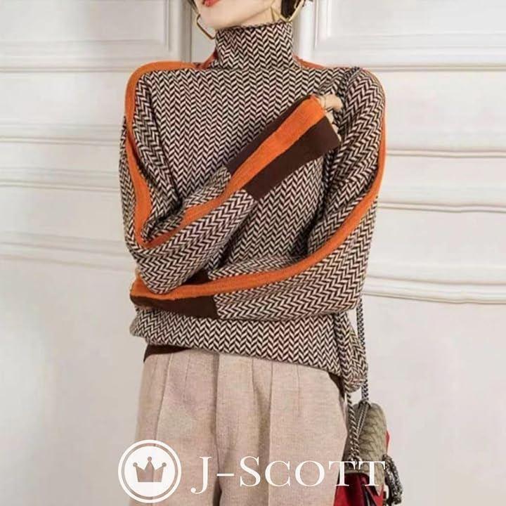 クラシカルな雰囲気のヘリンボーン柄に、肩から袖にかけてのグリーンやオレンジのラインが、都会的で軽快な印象に仕上げてくれます。