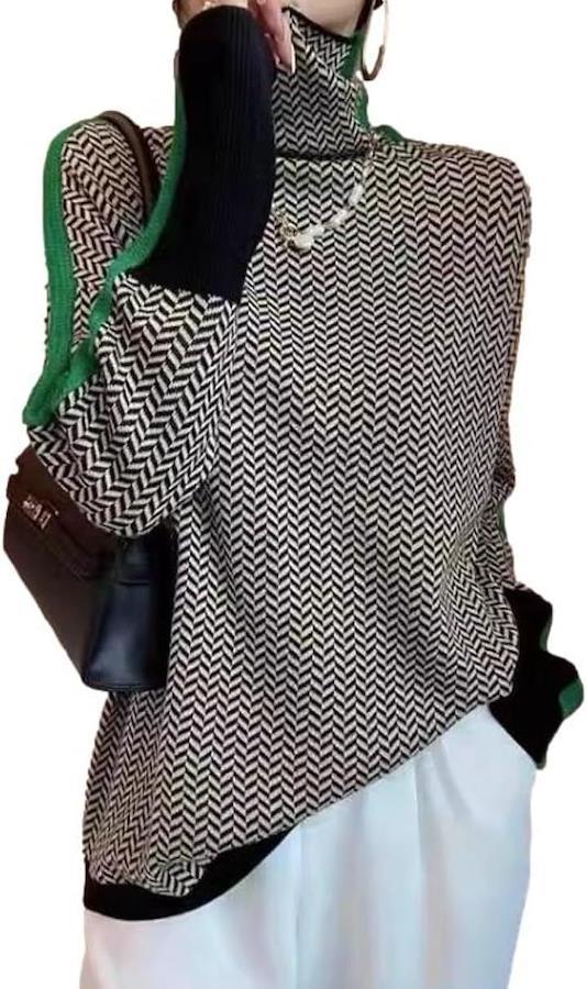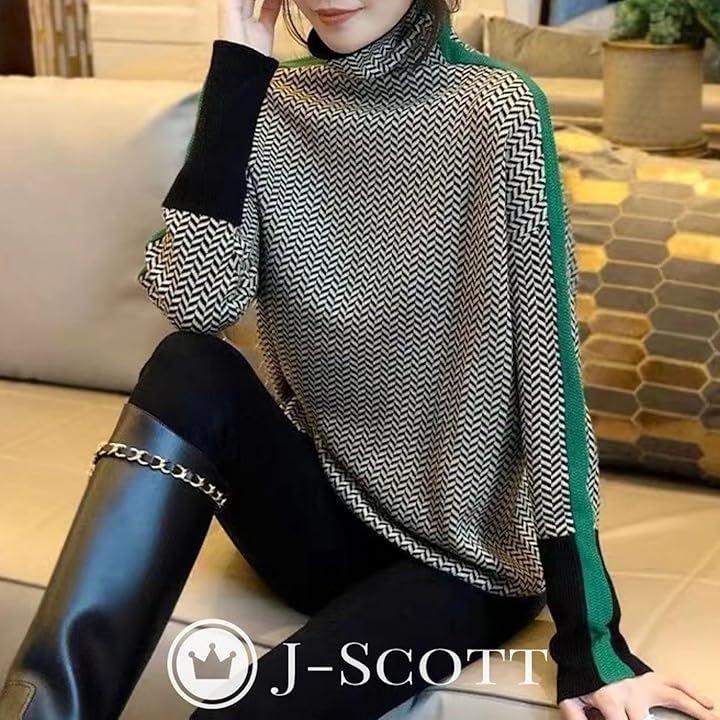 たっぷりとしたタートルネックと長めの袖がスタイルを縦長にすっきりとみせてくれます。