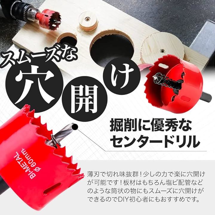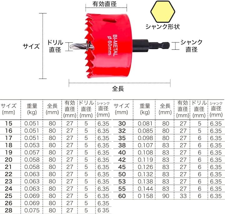 「インパクトドライバー対応」「 六角軸 6.35mm 」安価で使いやすいオリジナルのバイメタルホールソーです。