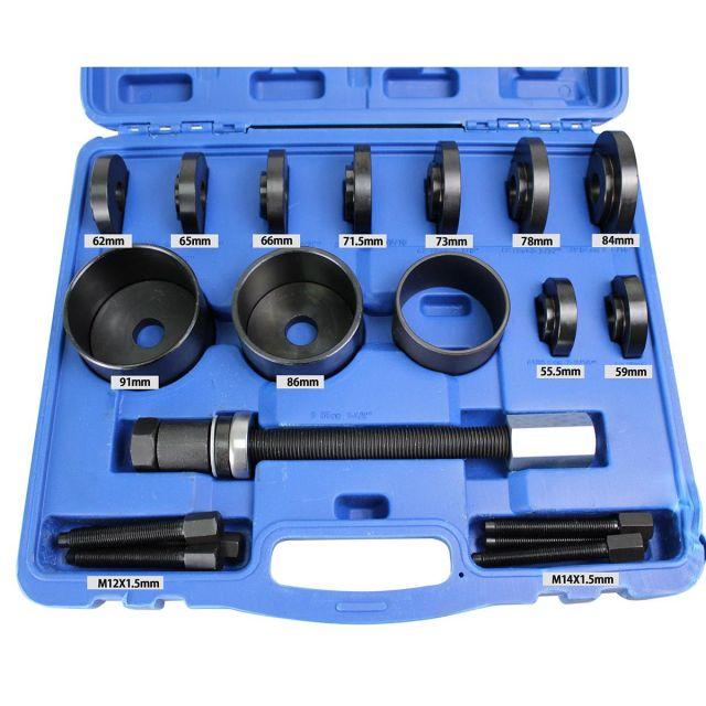 ハブネジ:M12x1.5mm:3個、M14x1.5mm:3個。アダプター:55.5mm、59mm、62mm、65mm、66mm、71.5mm、73mm、78mm、84mm、86mm、91mm。ほとんどの前輪駆動車、小型トラックに適応しています。フロントハブベアリングプーラーセットはホイールベアリングに取って代わり、ステアリングナックルとストラットアセンブリを車両に固定します。前輪ベアリングの取り外しと取り付け用。ステアリング装置の分解する必要はありません。