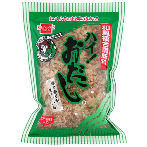 ■商品名:ハイ!おだし■内容量:90g■メーカー:健康フーズ■賞味期限:1年■原材料:さばのふし(静岡・熊本県産)、いわしの煮干(長崎・熊本県産)、昆布(北海道産)、椎茸(国内産)■商品詳細:○削り節、椎茸、昆布が入った天然複合調味料です。○深い味わいと香りが生きています。