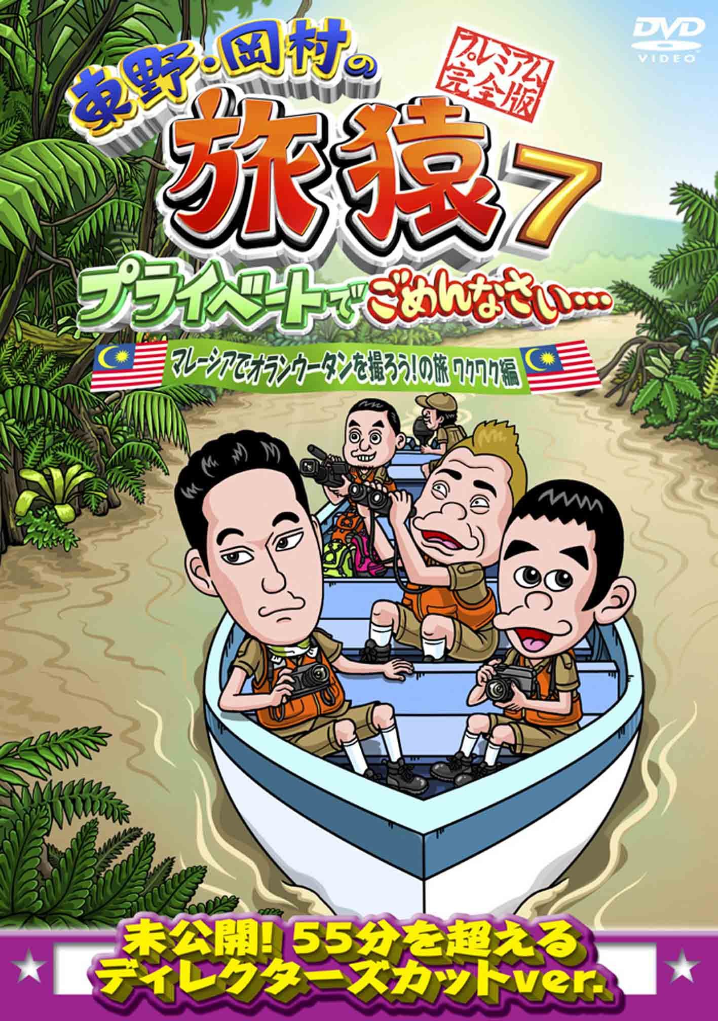 『東野・岡村の旅猿7 マレーシアでオランウータンを撮ろう!の旅 ワクワク編 プレミアム完全版』★放送しきれなかった未公開映像を追加したディレクターズカットバージョン!カリブ海以来の海外ロケへ!行き先は、以前から東野が行きたがっていた「マレーシア・ボルネオ島」!野生のオランウータンを撮影することを目的に、出川哲郎と共に3人旅。現地では予想外のハプニング・いざこざの連続!ボルネオ島では、様々な動物を目の前にしテンションアップ!果して無事にオランウータンを激写することはできるのか!?【スペシャル特典映像】・未定【初回限定封入特典】★旅猿7DVD 4巻合同企画4巻連動購入応募特典(応募券&応募ハガキ封入)※商品の特典および仕様は予告なく変更になる場合がございます。『東野・岡村の旅猿』とは・・・プライベートでも仲が良い東野と岡村が海外旅行する様子を撮影した「新型旅番組」。基本的に東野・岡村とハンディーカメラを持った2人のディレクターの計4人のみで行動し、更に事前のロケハンなどもなく従来の旅番組と比べて「素」「プライベート」「行き当たりばったり」という部分が大きく占めていることが特徴。番組のオープニングでは、2人が東京・港区にある喫茶店「珈琲園ぶらじる」で落ち合い、東野または岡村が独断で決めた旅先を告げるところから始まることが慣例となっている。『東野・岡村の旅猿7 プライベートでごめんなさい・・・』【番組情報】 : 2015年4月12日より、毎週日曜 10時55分~11時25分 放送中!※放送時間は変更になる場合がございます。【番組公式HP】 : www.ntv.co.jp/tabizaru/≪Copy Right≫(C) 「東野・岡村の旅猿7」製作委員会