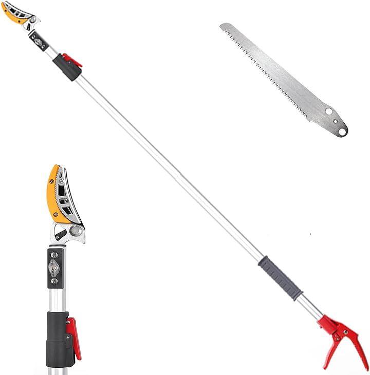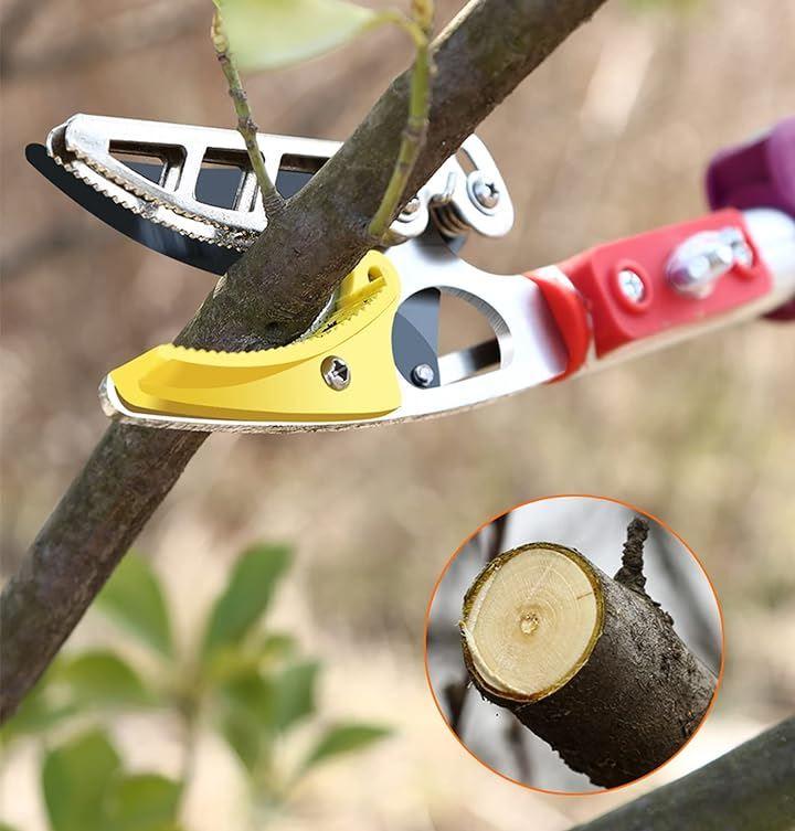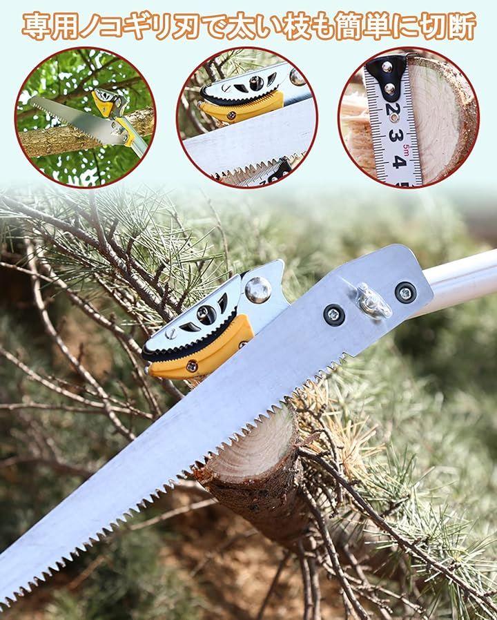 安定感抜群で高い場所もしっかり捉える..専用ノコギリ刃で太い枝も簡単に切断できます。