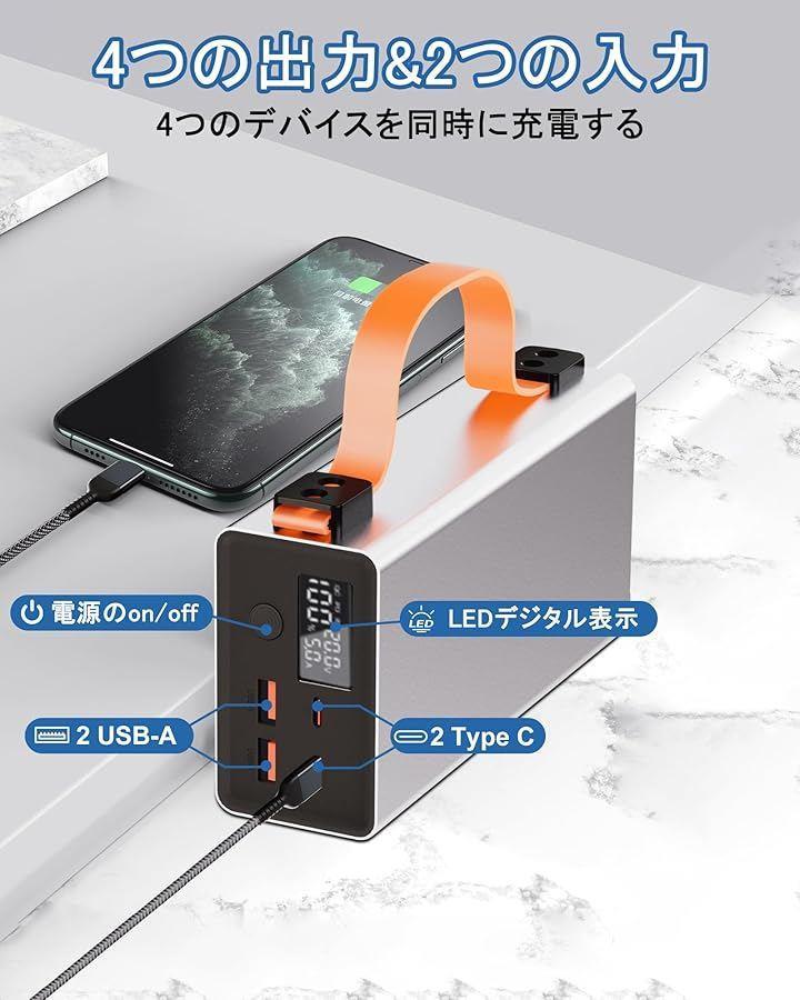 「86000mAh自動車級超大容量バッテリー」86000mAh大容量モバイルバッテリーがついに登場。急速充電と超長時間の待機が本製品の特長で、日常生活で大活躍すること間違いなし。