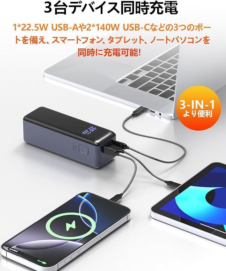 モバイルバッテリーの中でもトップクラスのパフォーマンスを誇り、スマートフォンやタブレットはもちろん、ノートパソコンでも充電できるものです。